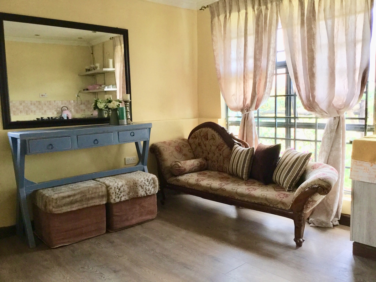 這間現代化和設備齊全的單臥室公寓位於Rouf頂部,為您提供隱私,同時享受令人驚嘆的Aberdare Range的美麗。在寧靜的OLKALOU小鎮度過我的時光或浪漫假期的完美去處,配備您可能需要的所有設備與服務。
