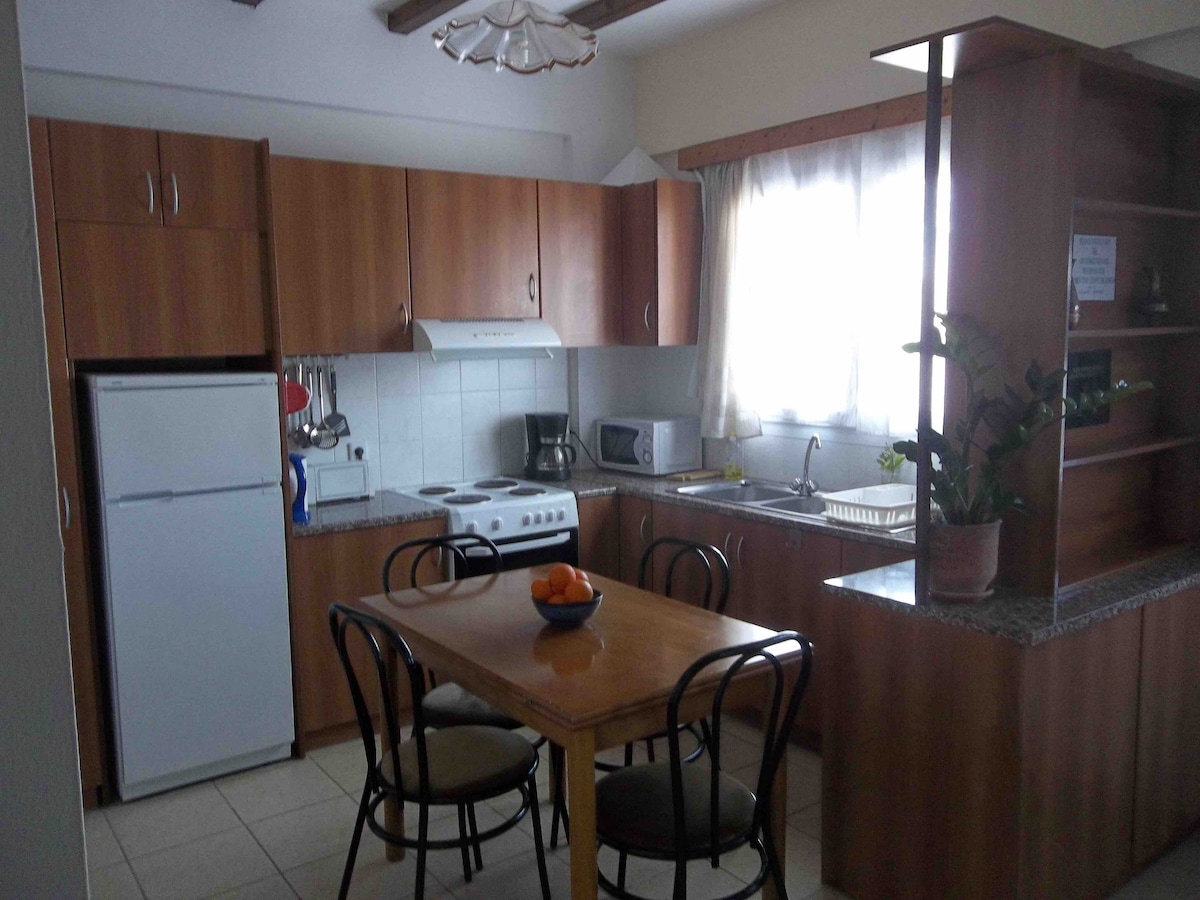My apartment is a great place to unwind.Being on the upper floor there is always a cool breeze with lots of shade from the tall trees. Close enough to the port of chios that transportation is not needed. The city has created a new public park next to my home. It features a cushioned jogging track, exercise equipment and basketball courts. Facilities are available for all guests