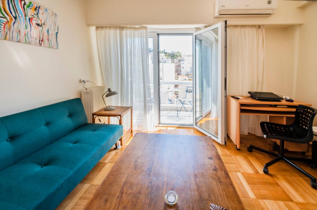 全新翻修的公寓,位於雅典市中心,步行10分鐘即可抵達雅典衛城和菲洛帕波斯山。公寓可舒適入住2人。設備精良的廚房,如果您探索了雅典餐廳提供的一切,請隨意準備自己的餐點,並在餐桌或陽臺上享用一杯葡萄酒,欣賞宏偉的雅典衛城。我們很樂意與房客分享我們的內線建議,讓您盡情享受雅典!