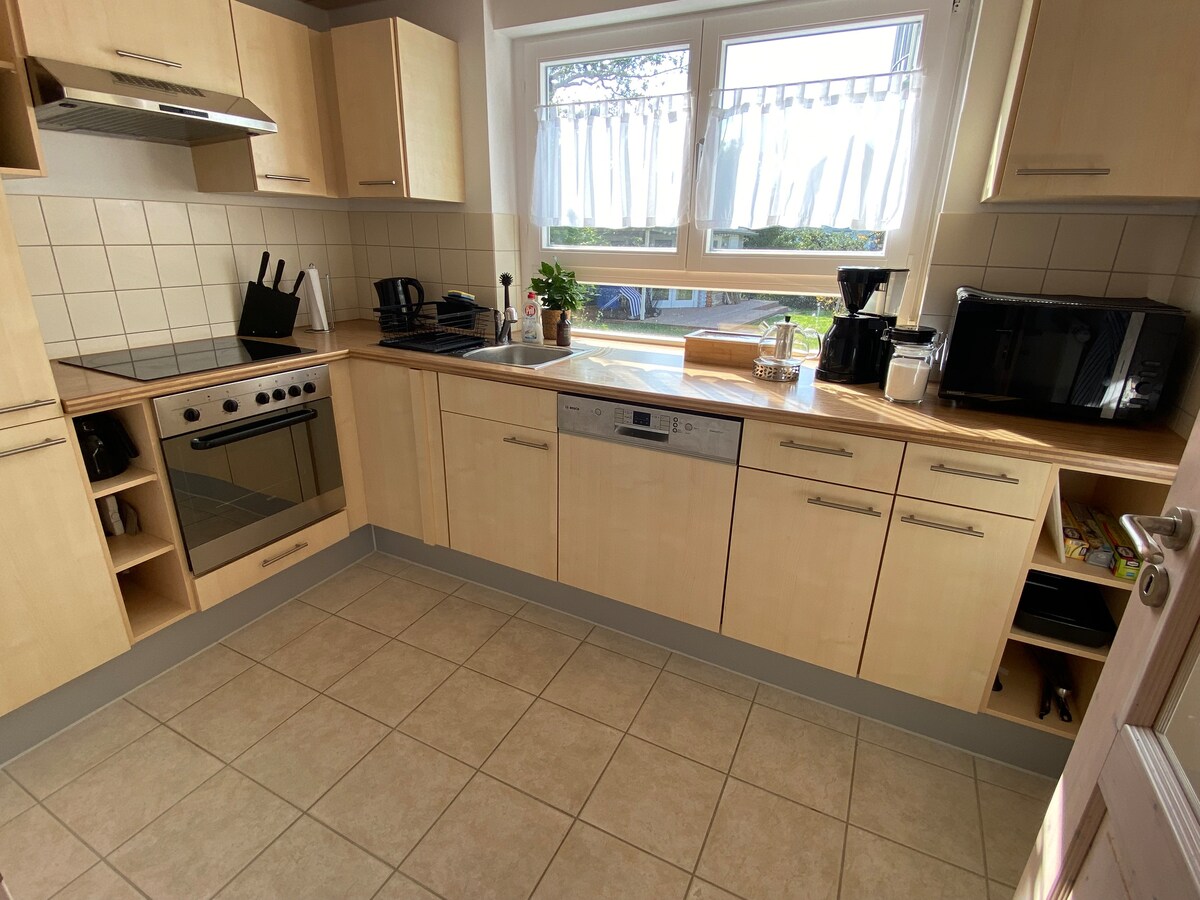 RNT20220009 現代化的2間臥室。公寓(約42平方米),帶露臺。高品質的設備,配有明亮的起居/用餐區域,開放式小廚房(洗碗機、冰箱 + 冰櫃、2 灶和微波爐、烤麵包機、水壺和咖啡機,或可應要求提供過濾咖啡機)。 獨立臥室,配有 雙人床(180x200)。從這裡可通往帶淋浴/馬桶的浴室,配有地暖。 如有需要,最多可提供 2 張折疊客床(80x190)。