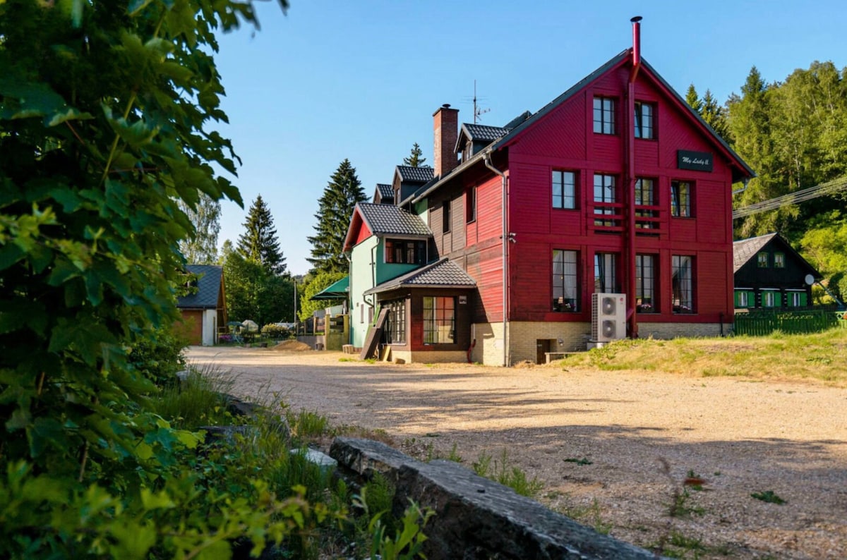 波希米亞瑞士國家公園邊緣的華麗舒適現代房源!您需要的一切都在75平方公尺內。 它是波希米亞之家(3間獨立房屋)的一部分,設備齊全,配有所有必要的設備與服務。如果您正在尋找度假、放鬆和享受大自然美景的地方,那麼這是理想的選擇!非常適合情侶、家庭、商務/獨行旅客。非常適合各種戶外活動的起點,自行車路線和標記的徒步道就在房子旁邊。