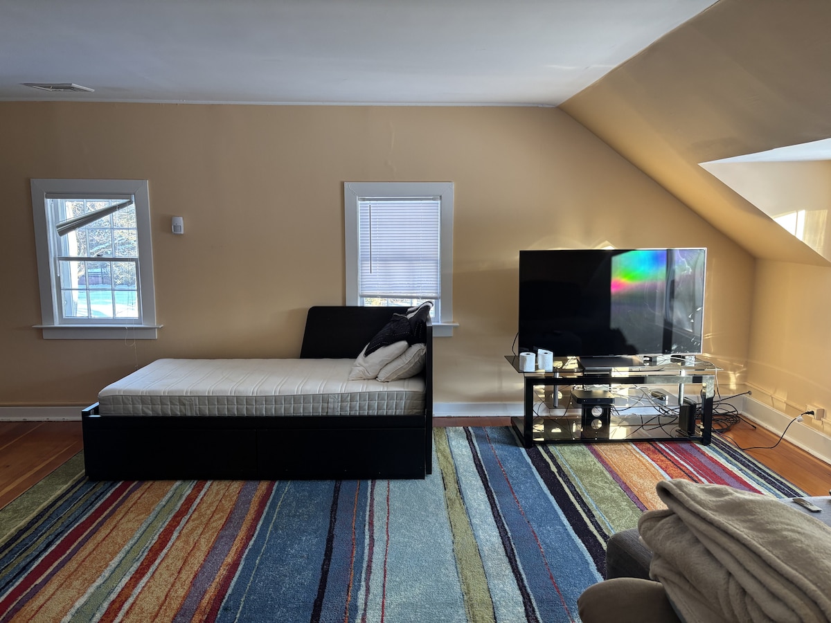 迷人的客用住房,公園般的環境中有許多設計元素。充滿自然光線( 5個天窗! ) ,並配有您需要的一切!距離普林斯頓市中心僅幾分鐘路程!這是一個可追溯到1700年代的可愛莊園的一部分。我們住在主樓,如果您需要我們,我們將隨時為您提供協助!安靜而寧靜,可前往伍德菲爾德保護區(Woodfield Reservation)-美麗的步道,包括池塘。可以與同一物業的其他空間一起出租。查看我的個人資料!