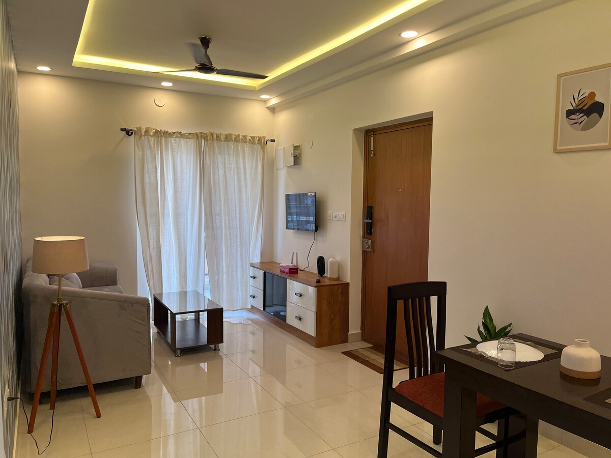 歡迎來到Harlur的舒適藝術度假勝地,靠近HSR和PNR Felicity Mall。Vaishnavi科技園區、生態空間、生態世界、Wipro都在5-6公里以內。享受微風陽台、全套廚房、快速WiFi和獨一無二的繪畫角落。非常適合情侶或獨遊旅客,尋找溫馨安靜的住宿,附近有咖啡廳、肯德基、麥當勞和電影院。