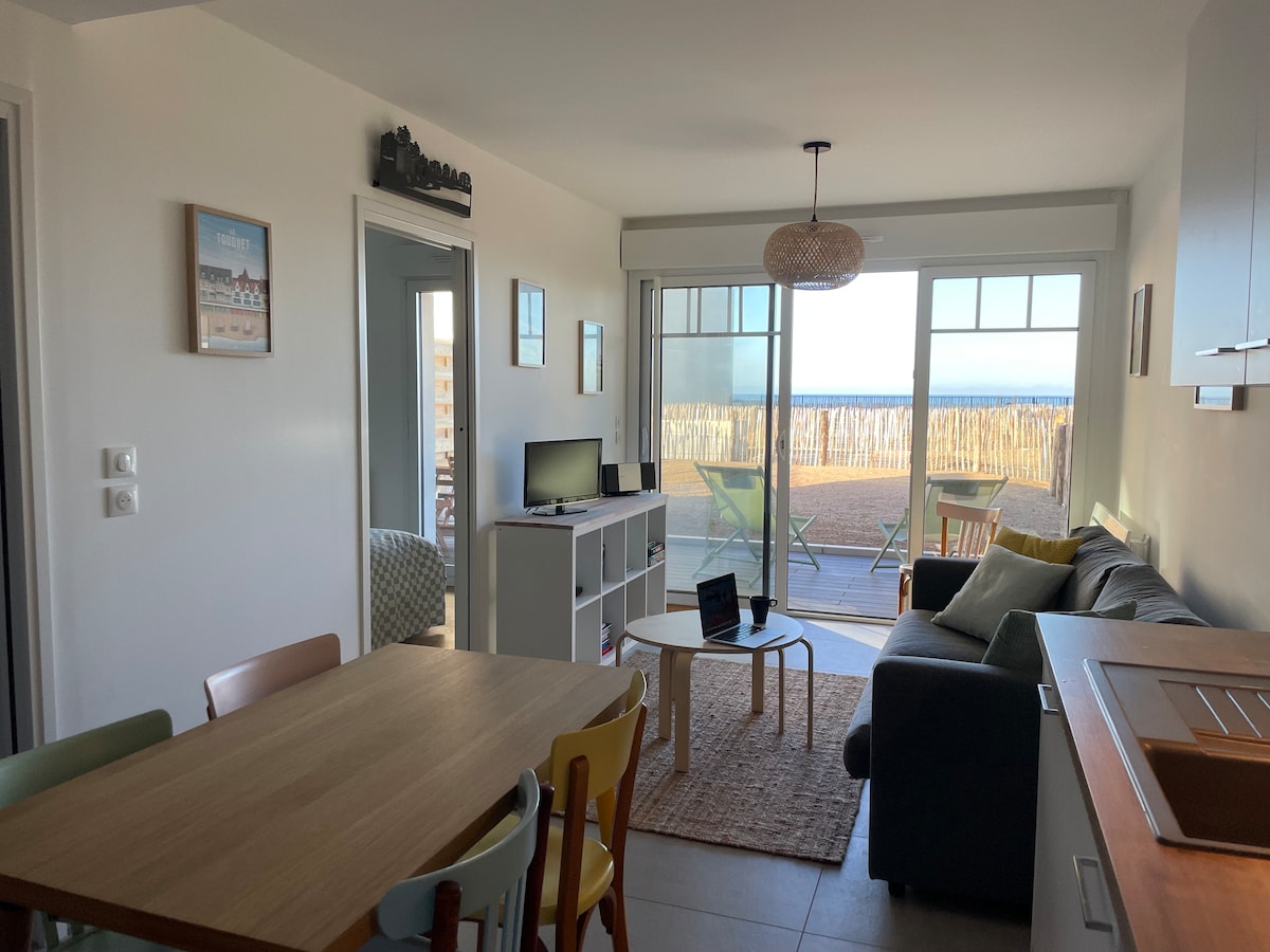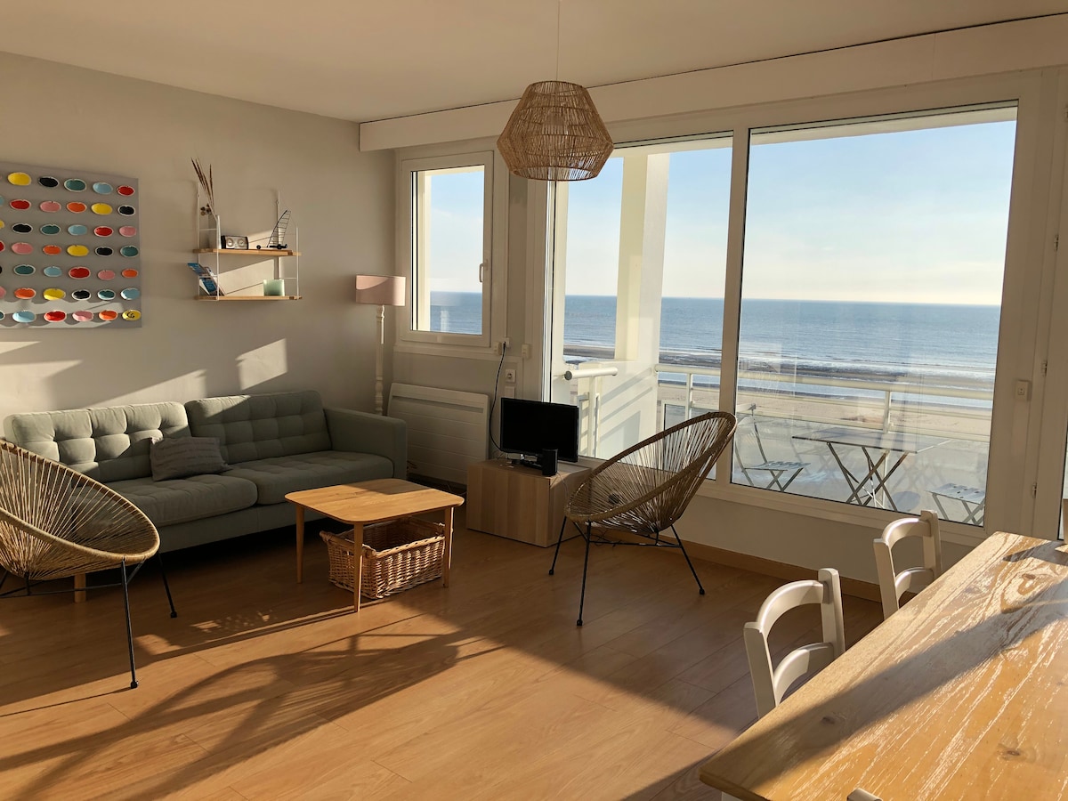這間家庭公寓穿過大海,面向行人堤岸。 您和大海之間沒有汽車或道路! 因此,您可以在陽臺頂部欣賞海浪的聲音 🌊 ☀️ 明亮的公寓,位於「La Réale」住宅的4樓,步行不到3分鐘即可抵達市中心! Hardelot市中心適合家庭入住,在那裡您可以找到餐廳、電影院、雜貨店、麵包店、肉店、魚販、時尚商店和房屋商店。