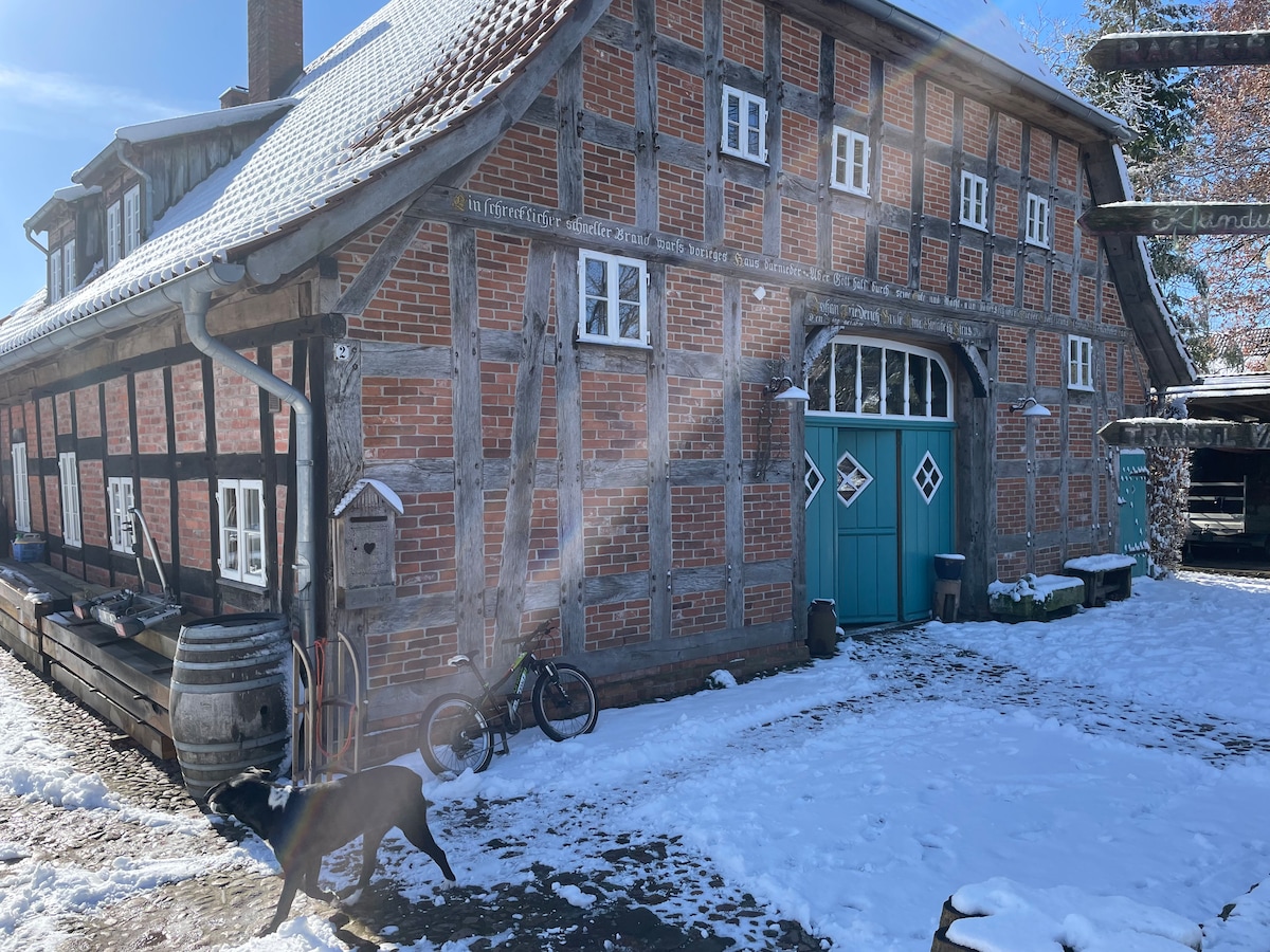 Relax with the whole family at this peaceful place to stay. You'll love the fully functional 3-bedroom apartment with an enclosed, sunny balcony. And, you've got direct access to the Örtze River where you can paddle, swim, fish, picnic, or simply daydream. It's the perfect blend of peace and comfort. In addition, you're welcome to explore our little hobby farm- chickens, sheep, and rabbits. If you want action, Heidepark, Serengeti Park, and the Soltau Designer Outlets are nearby.