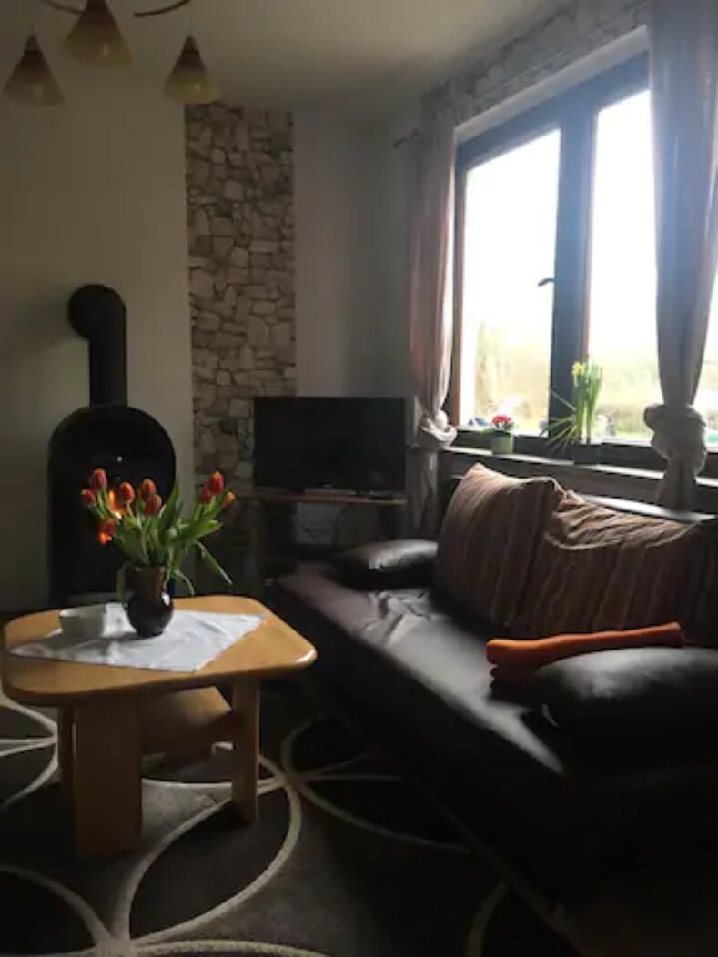在這個可容納2-4人的舒適住宿中,您一定會感到非常舒適。 55平方公尺將配備許多個人細節。 我們仍在翻修中,室內的照片將隨後進行。 您可以度過一個完全僻靜的假期,也可以與3個豪華露營帳篷的房客見面。 我每週提供徒步旅行、草藥工作坊和營火烹飪。 如果您願意,您可以赤腳和我一起花園... (這是一種體驗); -D