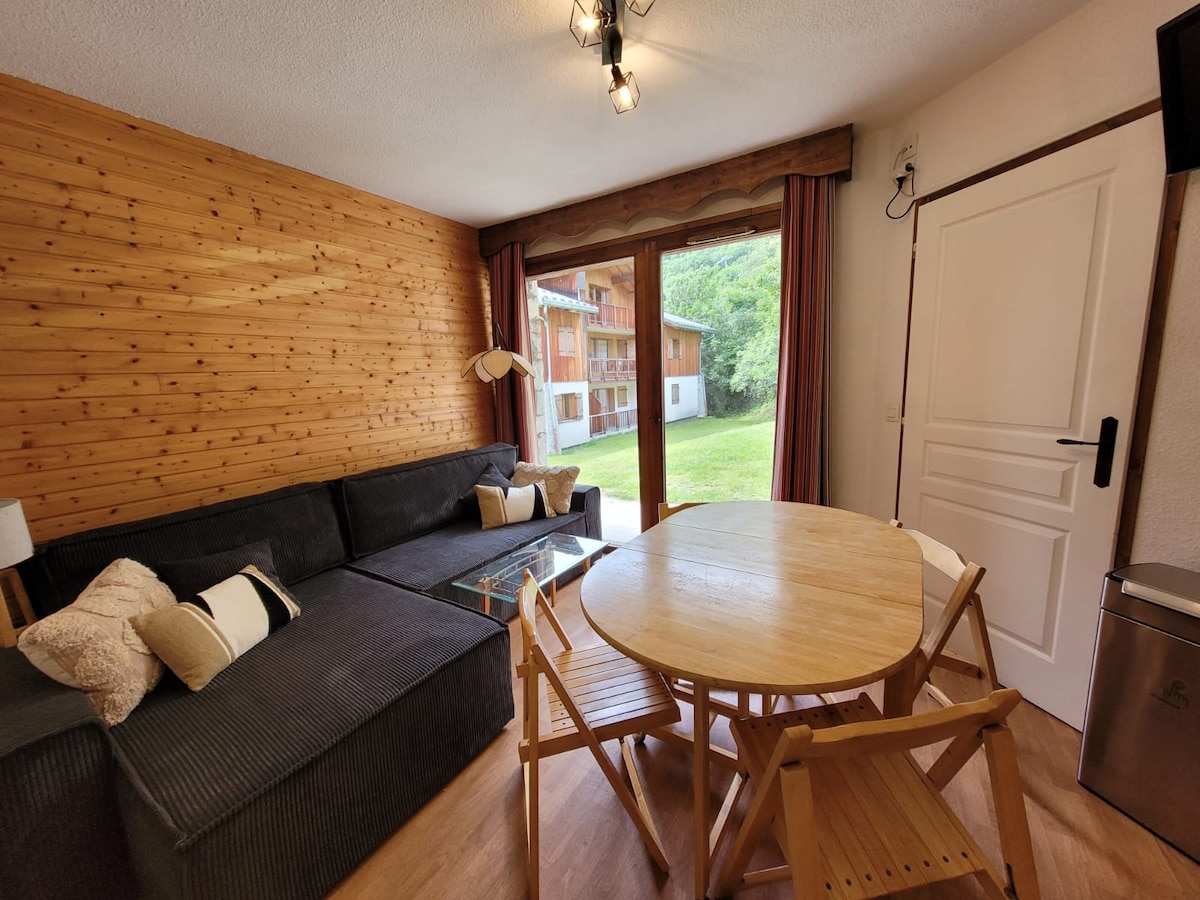 4星級旅遊住宅的4人公寓,配有2025年翻新的健康區域,包括: -室內泳池 -桑拿 -土耳其浴 -草藥茶 您將有一個私人滑雪儲物櫃和一個編號的戶外停車位。 包含: 街機(3000個遊戲) 桌上遊戲 雨傘牀和高腳椅 火鍋和Raclette電器 4G無線網絡 毛巾和牀單 書和漫畫 我們免費提供兩張成人穿梭巴士通行證。