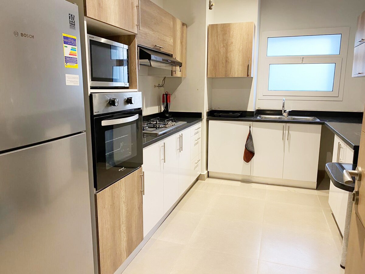 歡迎來到這間時尚現代的2臥室公寓,位於新開羅最負盛名的地區之一。 這個獨特的空間採用高級家具設計,既舒適又優雅。 開放式起居區域無縫流入設備齊全的廚房,非常適合現代生活。 公寓設有裝潢精美的臥室和高端裝飾,室外,享受您的私人花園,配有舒適的座位和一些機器設備,提供放鬆和實用