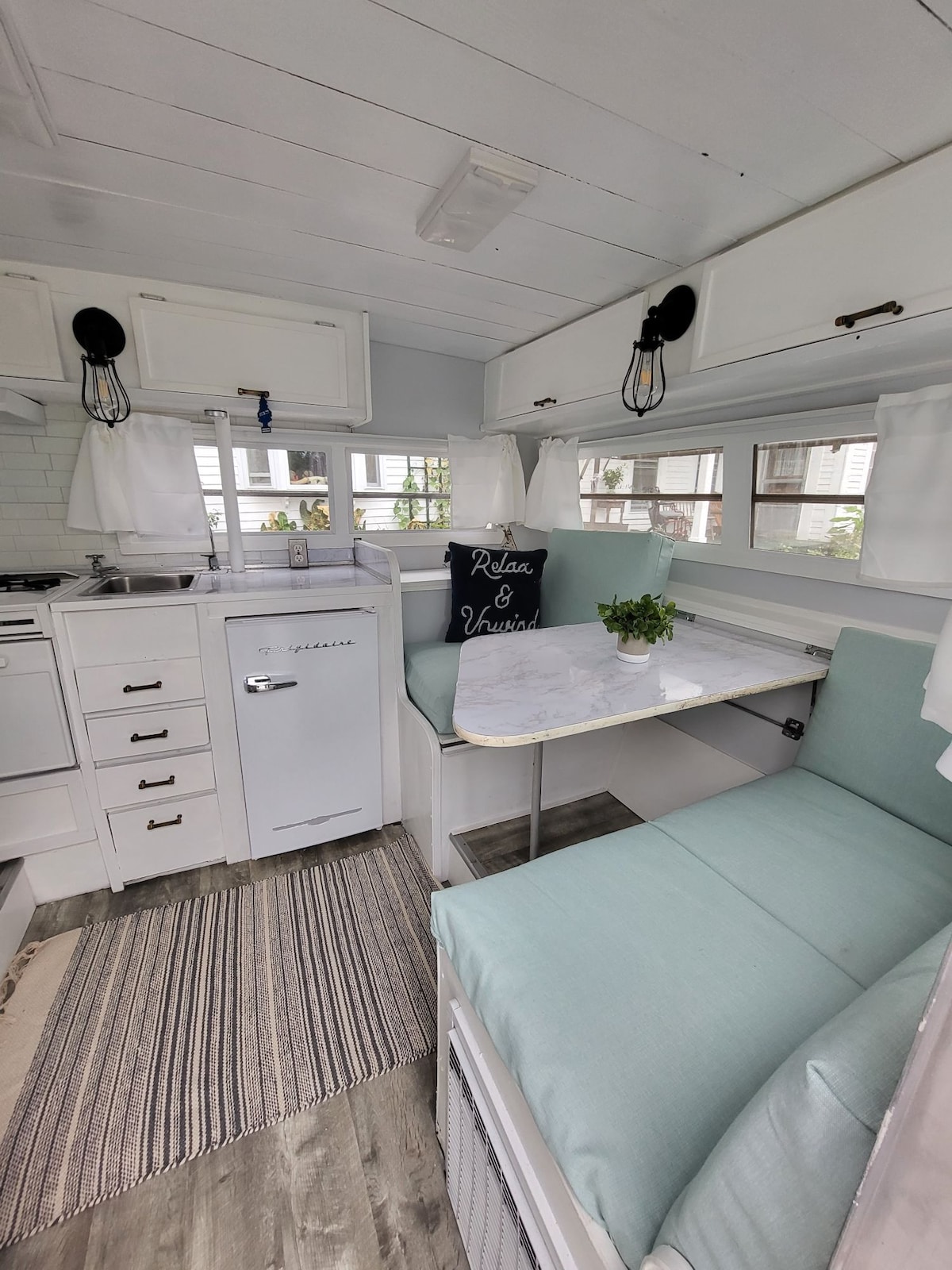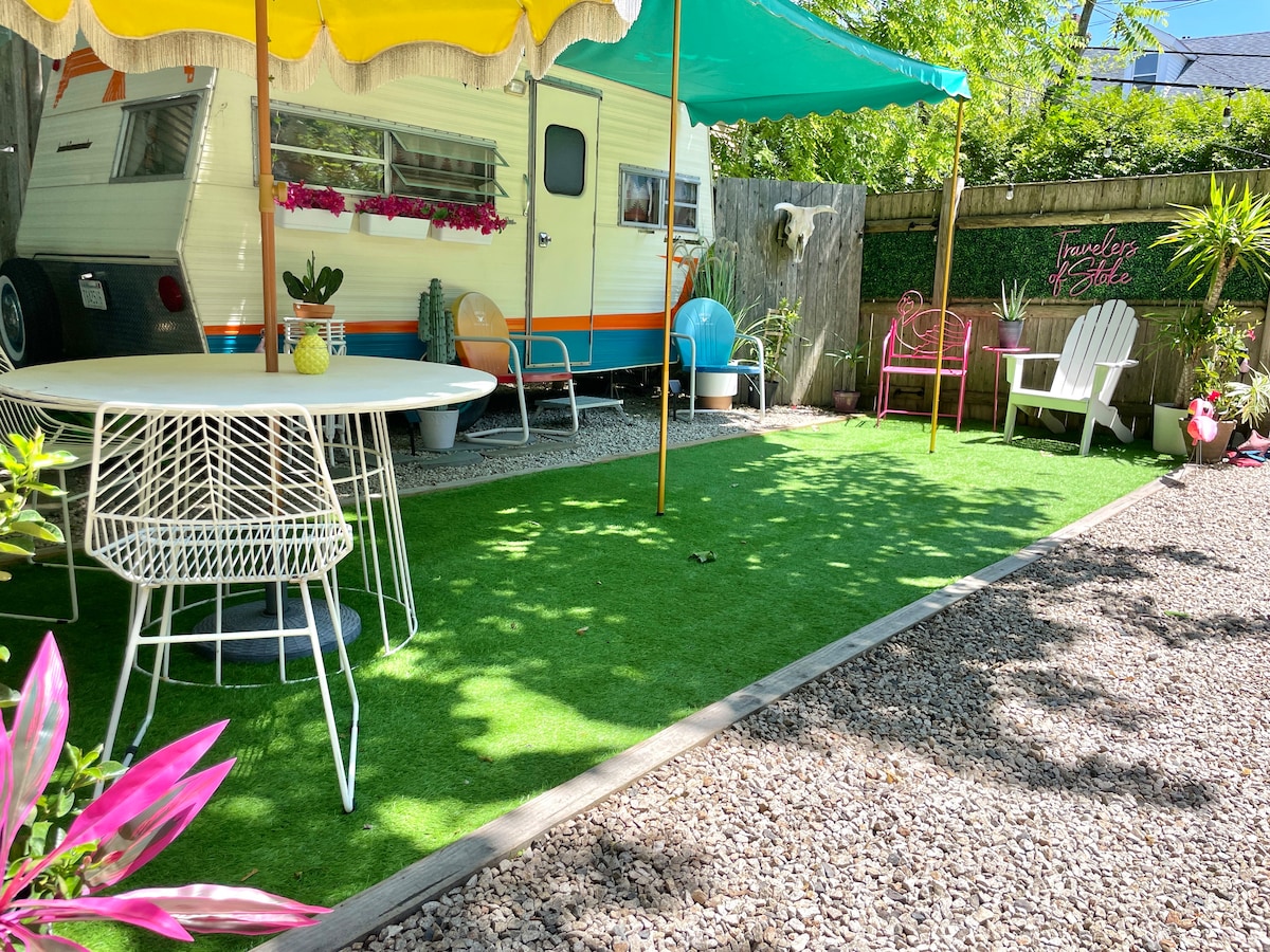 這輛Vintage Camper是多佛市中心新翻修的遺跡。 步行6分鐘即可抵達亨利法律公園( Henry Law Park ) ,或步行不到10分鐘即可抵達市中心的任何餐廳和商 有更新的管道、電器和新油漆。 它有一個餐廳角落、全尺寸牀、廁所和迷你廚房。 有室外烤架、火坑和室外熱水淋浴間-與湖泊不同,這輛復古露營車坐落在私人圍欄式豪華花園綠洲中,配有水、電力和便利停車位。
