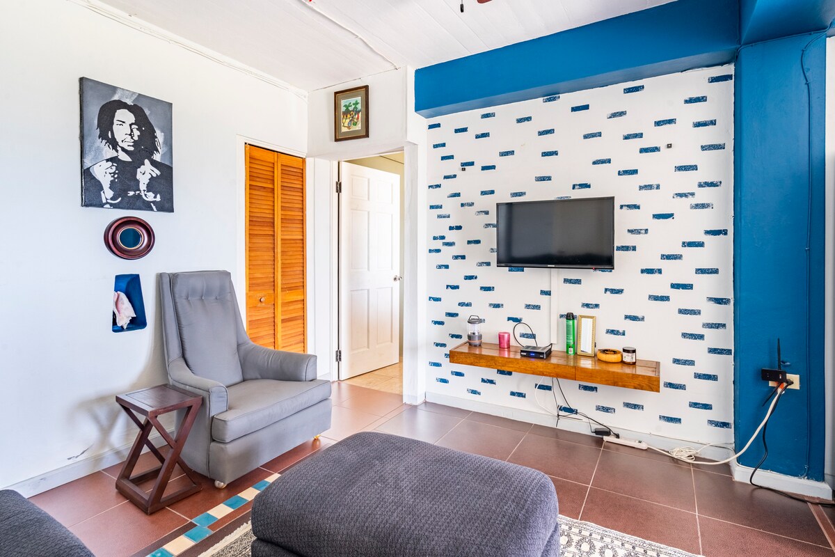 逃到金斯敦安全的Jackfoot Nook! 步行即可抵達牙買加美食,享受100Mbps乙太網路,並在我們的豪華空調單間公寓中放鬆身心。 非常適合單身女性、情侶和遠程工作,您有24小時全天候熱水、獨特的藝術、辦公桌、廚房和露臺。距離匹克球球場不到5分鐘路程。 Jackfoot Nook提供真正正宗且可步行的金斯敦體驗! 靠近巴比肯,靠近所有日常必需品。知道您有很棒的房東,可以無壓力地工作或探索。