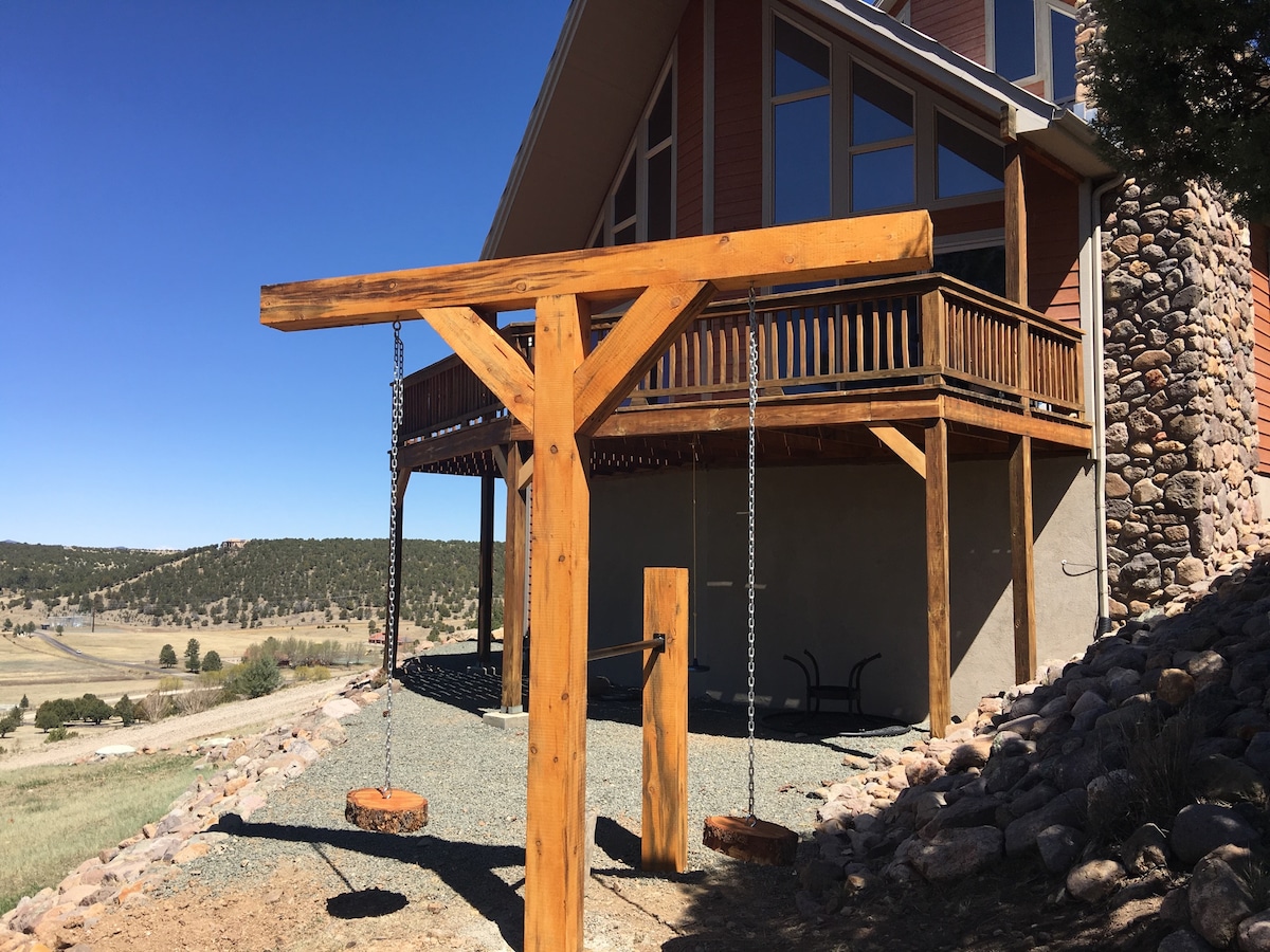 Escape to the mountains! Amazing views from this 3 BR, 2 Bath less than 2.5 miles from the ski/mtn bike lift. Location is everything and you can't beat this one. Quiet home beautifully situated on the green belt. Relax all day, hike, golf, mtn bike, ski.. Angel Fire has it all and what better way to enjoy it than with this outstanding home where you will have the entire space to yourself. Well-stocked with all of the comforts of home, you won't want to leave this paradise.