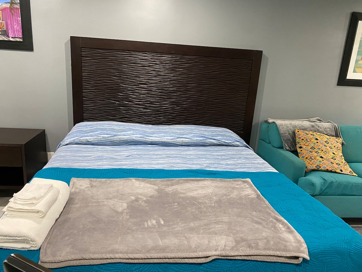 位於市中心的舒適、全空調、安全且安靜的地方。這間 1 臥室公寓配有廚房,配有爐子、烤箱、微波爐、冰箱、廚房用具、洗衣機和烘乾機。在涼爽的空間放鬆身心,臥室和客廳有免費Netflix。此房源位於住宅區,距離海灘和拿索市中心15分鐘車程,距離快餐店、銀行、當地超市和藥店5分鐘車程。房源內禁止抽煙。