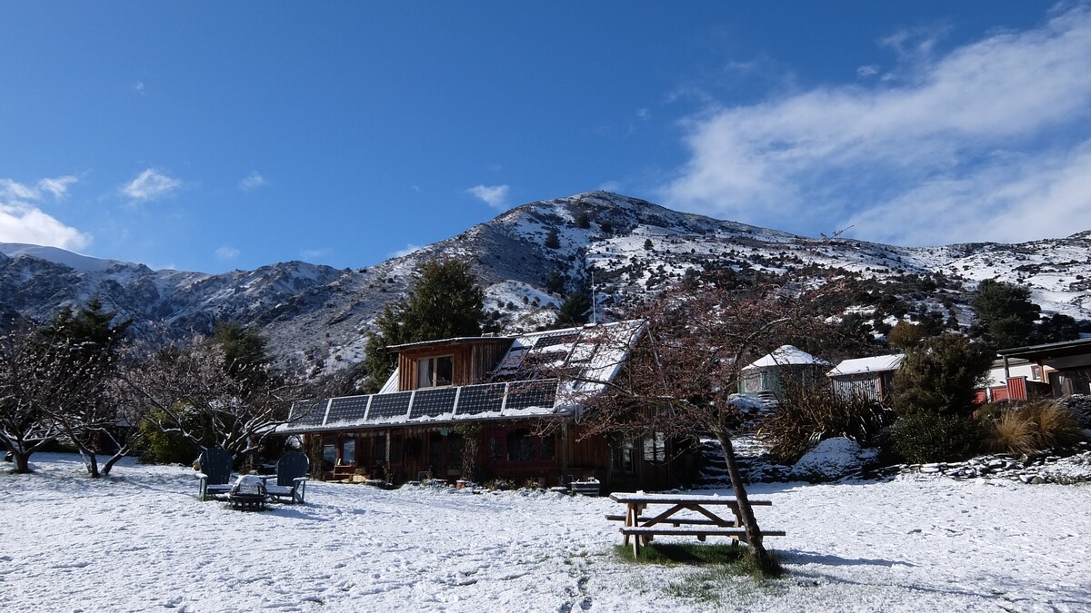Discover Mountain Spirit NZ! Nestled in the foothills of Mt Grandview, our sunlit, spacious yurt offers a unique escape just 20 mins from Wanaka. This 7m yurt boasts stunning views and seclusion at the property's highest point, making you feel on top of the world. Wake up to birdsong, enjoy breathtaking sunsets, and stargaze through the skylight. Experience off-grid living with spring-fed water, perfect for a cozy retreat. Welcome to your perfect escape! NOTE: setup like a hotel room, no kitchen