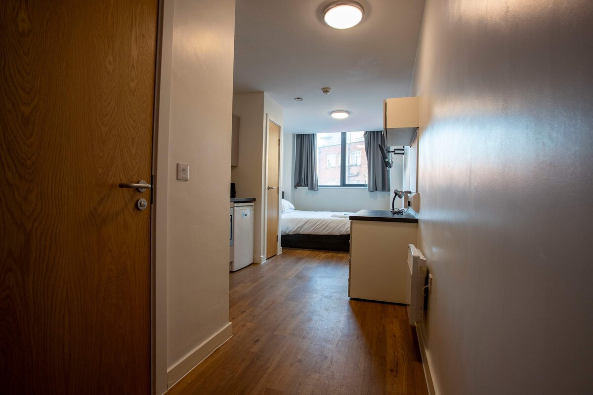歡迎來到我們位於Student Roost 's Newcastle 1的舒適單間公寓! 享受設備齊全的廚房、衛浴和起居空間。 非常適合雙人入住,提供小型雙人牀、電視、衣櫃、個人書房和套房浴室。 體驗泰恩河畔紐卡斯爾最棒的文化和夜生活,同時享受我們的便利設施。 立即預訂住宿!