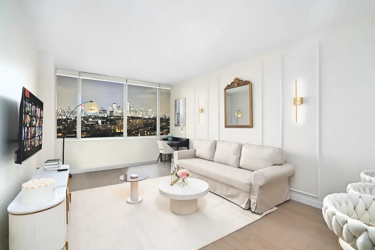 Kick back and relax in this calm, stylish space. With modern appliances and top amenities this place is loaded. 10 ft ceilings, digital fireplace, 24 hr gym and more. Conveniently located next to train and 10 minutes to NYC. Stunning views of NYC Skyline. ⭐️ Save 15% by booking direct. Inquire for details only when you are prepared to book.