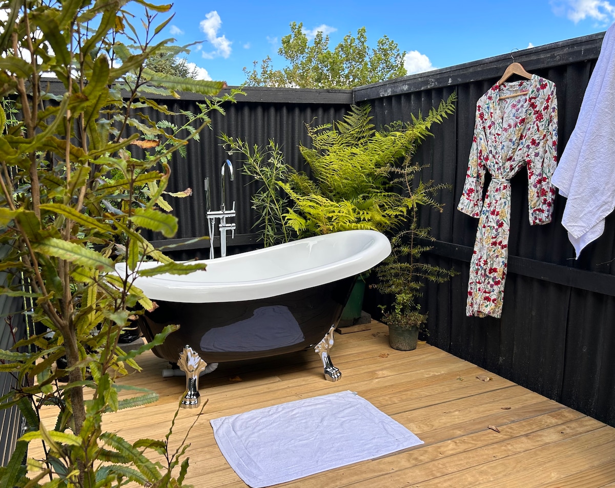 在The Zen Hideaway欣賞這間大自然包圍的寧靜房源的四周美景。 The Zen Hideaway坐落在離公路不遠的農場圍場中,周圍有成熟的樹木,是放鬆身心的完美場所,可手持咖啡或葡萄酒,俯瞰郁郁葱葱的綠色農田和動物。 這個6x3公尺的迷你屋全新且舒適,配有全套套房和小廚房、WiFi、雙人床、烤肉,甚至是漂亮的戶外浴缸!