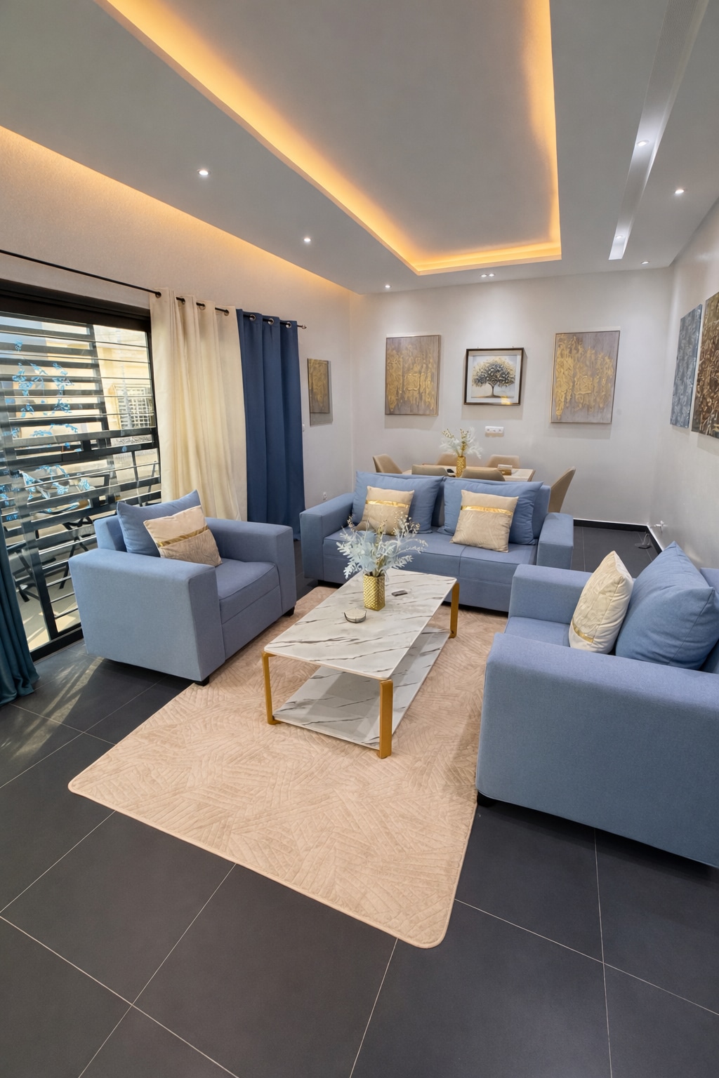Spacious & Comfortable 3 beautifully designed bedrooms with air conditioning in bedrooms & living room. Hot water in bathrooms. Family with kids will love the place. Fresh linens and towels come sealed from the cleaning company. Wi-Fi, peaceful environment. Fully Equipped Kitchen, whether you love to cook or just need a quick meal, the modern kitchen has everything you need. Private parking, Generator for uninterrupted power, washing machine. Self check-in with code provided.