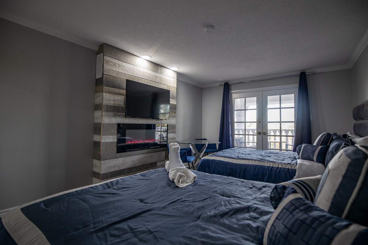 This spacious studio suite offers added comfort, including a sitting area and extra amenities for extended stays. Perfect for couples or small families, it’s conveniently located near Niagara Falls State Park and local dining spots. Guests enjoy a restful retreat just minutes from the action.