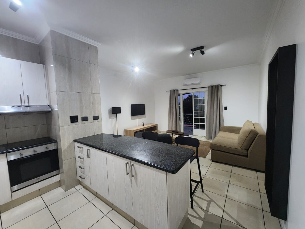 我們有太陽能,因此無需減少負載或停電。 這個獨特的設計和定制空間溫馨緊湊,非常適合獨自旅行者。 無上限的WiFi和Dstv Premium。 光線充足的公寓配有私人戶外區域,正期待您的光線充足! 臥室、帶淋浴間的浴室和休息室/小廚房。 距離桑頓中央商務區6.5公裏,我們距離許多購物中心和主要高速公路動脈僅幾步之遙。 房源內有安全的停車位,並可快速使用Uber。