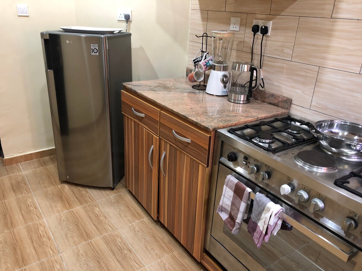 這間精緻奢華的服務式公寓遠離城市,但可通往市中心。 它位於市中心,配備所有獨家設施和供電系統,如安裝的變頻器和發電機,每天為冷卻裝置供電12小時。 我們提供收費的洗衣服務,但熨衣服免費。 距離Novare商場等景點僅10分鐘路程,在那裡您可以找到Genesis Cinema、Shoprite、水療中心、理髮店、餐廳等。