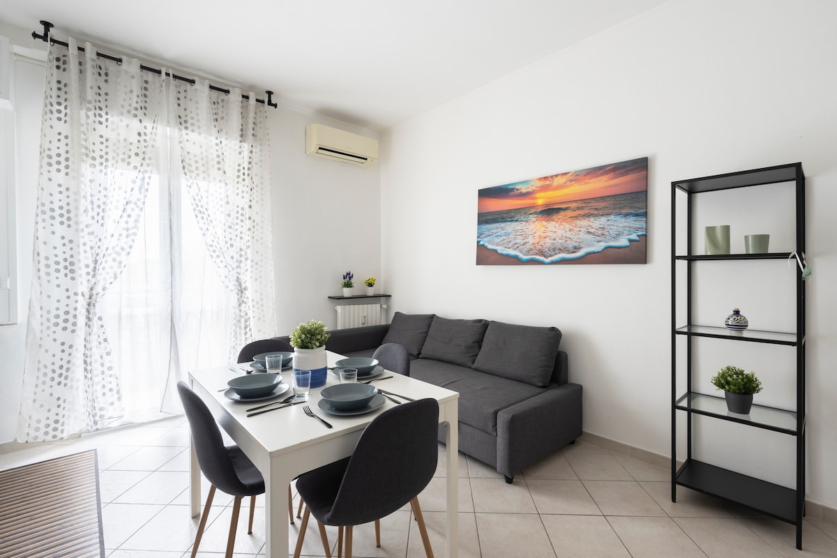 在這片安靜而優雅的綠洲中放鬆身心,恢復活力。最近翻新的寬敞兩房公寓,包括:配有1張雙人床和辦公桌的臥室。客廳配有舒適的法式沙發床,廚房配有烹飪所需的一切,寬敞的浴室配有步入式淋浴間。位於5樓,有一個漂亮的陽臺,在一個安靜的公寓內,距離地鐵1號線僅幾步之遙,只需20分鐘即可抵達米蘭市中心。