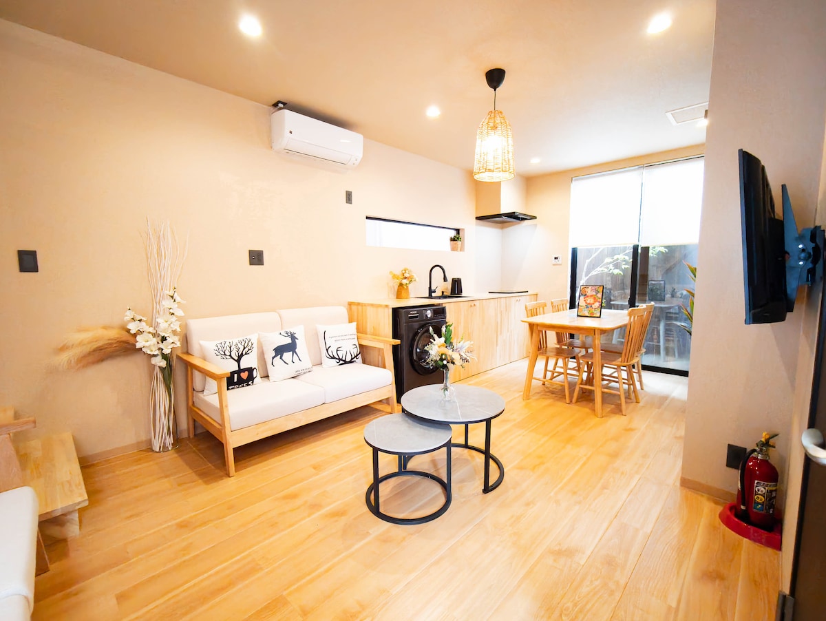 🏠 70㎡ • 2 Bedrooms • Family Friendly • Great Access to Namba & Kansai Airport Welcome to【MOMO】:A single-family villa renovated in February 2025. 5 min walk from Tengachaya Station, with direct trains to Namba & Kansai Airport. Quiet area, yet fully convenient.