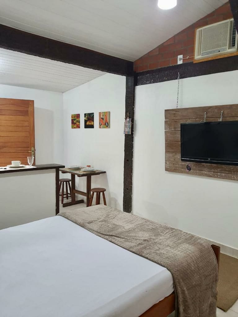 The stylishly decorated loft features an open concept with a wooden divider separating the bedroom from the living room and kitchen. It has 2 TVs, one in the bedroom and one in the living room. With a comfortable double bed, many windows bringing in natural light, a kitchen integrated with the living area, and a spacious L-shaped balcony with a surreal view of Icaraí Beach. Fully equipped, it's 200m from the beach, close to pharmacies, a market, restaurants, and the most famous street in Icaraí.