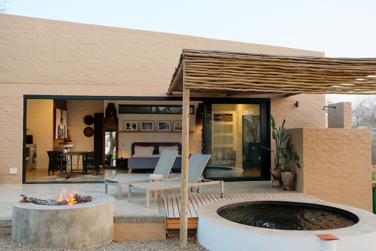Ivory House是一間小型現代野遊屋,專為遊覽克魯格國家公園的情侶、蜜月或只是慶祝愛情而設計。 這間獨立屋是一個華麗的開放式設計,配有7米的滑動門。 這間獨立屋的室內設計使用了來自非洲各地的物品。 房子距離克魯格公園(Kruger Park)圍欄僅200米,步行一小段路即可看到大象或從我們的觀景塔看到大象。