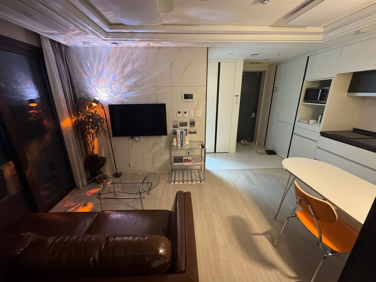 感謝您在巴黎尋找情人! (相當於套房和極其寬敞的房間!最佳位置!) -濟州機場5分鐘即可抵達新濟州市中心 (這是步行前往附近美食、免稅購物等的最佳位置) -無線網絡 -一樓: GS便利店 -寬敞的私人露臺 -大樓內的健身房(免費使用) -投影樑 -3臺攜帶式遊戲機 -冰箱 -微波爐、烤箱 -咖啡壺 -咖啡機 -電磁爐(2個爐頭)、鍋、煎鍋 -碗盤、杯子、 -洗衣機、洗衣精 -大廈內有烘乾機(需付費) -牀(加大雙人牀) -洗髮精、潤髮乳、沐浴乳 -香皁、牙膏、牙刷、 -乾衣機 -濕紙巾、衛生紙、衣架 -毛巾 -冷氣、暖氣、熱水 -藍牙兼容唱盤(包括LP唱片) -遮光窗簾 其他注意事項 -室內絕對禁止吸煙! -大樓地下室一樓的停車場可停放1輛車。 (下午6點後入住可能已額滿) 禁止大聲喧譁。 - 垃圾分類和處理 _基本安排