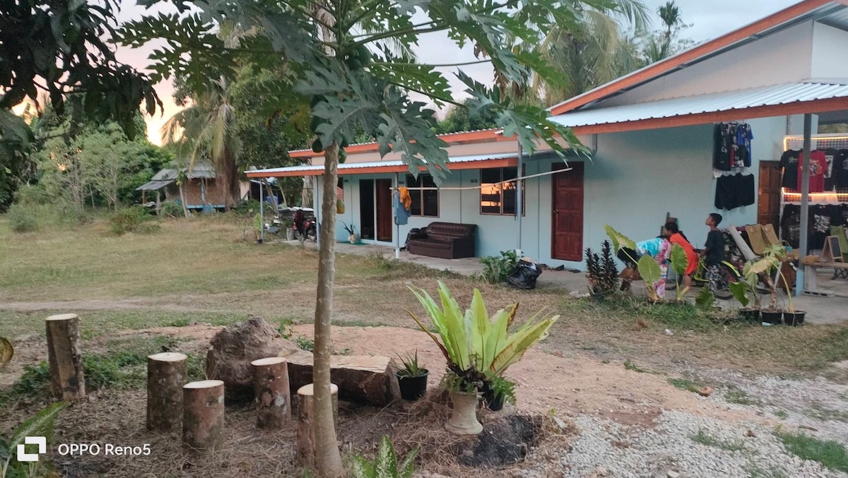小屋位於大自然之中。周圍有安靜祥和的山脈。非常適合放鬆和工作。旅居距離Ao Nang Pran Beach約6公里。您可以租用Goodter並騎車前往海灘。我們有美麗的大自然,鳥兒在鳴叫。早上,有一個蔬菜園和一個季節性果園供您免費享用。有美味的泰國菜供你品嚐。如果你喜歡大自然,我們歡迎你。