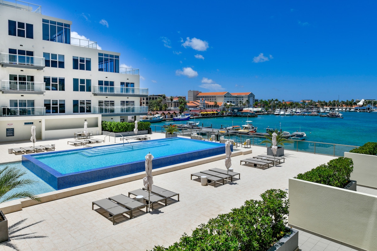 Casa Oded Azure Luxury ground-floor condo with private backyard & jacuzzi, perfectly situated for a relaxing getaway! 10-min walk to Eagle Beach or Palm Beach, with breathtaking ocean views from living room & master bedroom. Enjoy 2 infinity pools, jacuzzi, restaurant, gym & concierge. Modern finishes & top-notch amenities ensure a comfortable & indulgent stay. Perfect for beach lovers & those seeking a tranquil retreat. Expertly managed by a Super Host CASA ODED AZURE.
