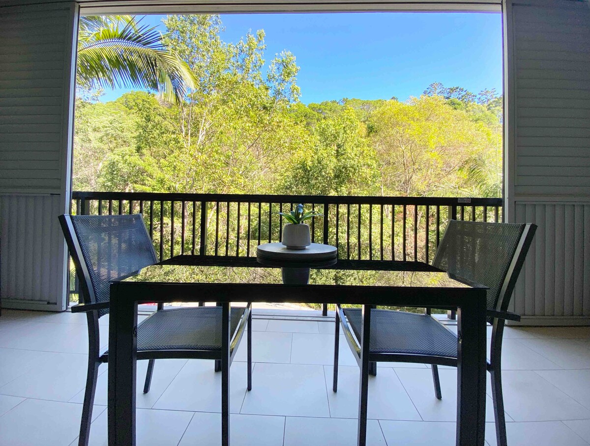 這間豪華公寓位於五星級度假村的黃金位置,毗鄰努沙國家公園(Noosa National Park),步行500公尺即可抵達美麗的努沙海灘(Noosa beach)和令人驚嘆的黑斯廷斯街(Hastings Street)商店和餐廳。 美麗的單間公寓,可欣賞郁郁葱葱的森林景觀,安靜且私密的環境,可使用度假村設施,如度假村潟湖泳池、健身房、小型泳池、遊戲室和蒸汽房。 我們位於太平洋大樓的二樓,可通過樓梯或電梯進入。