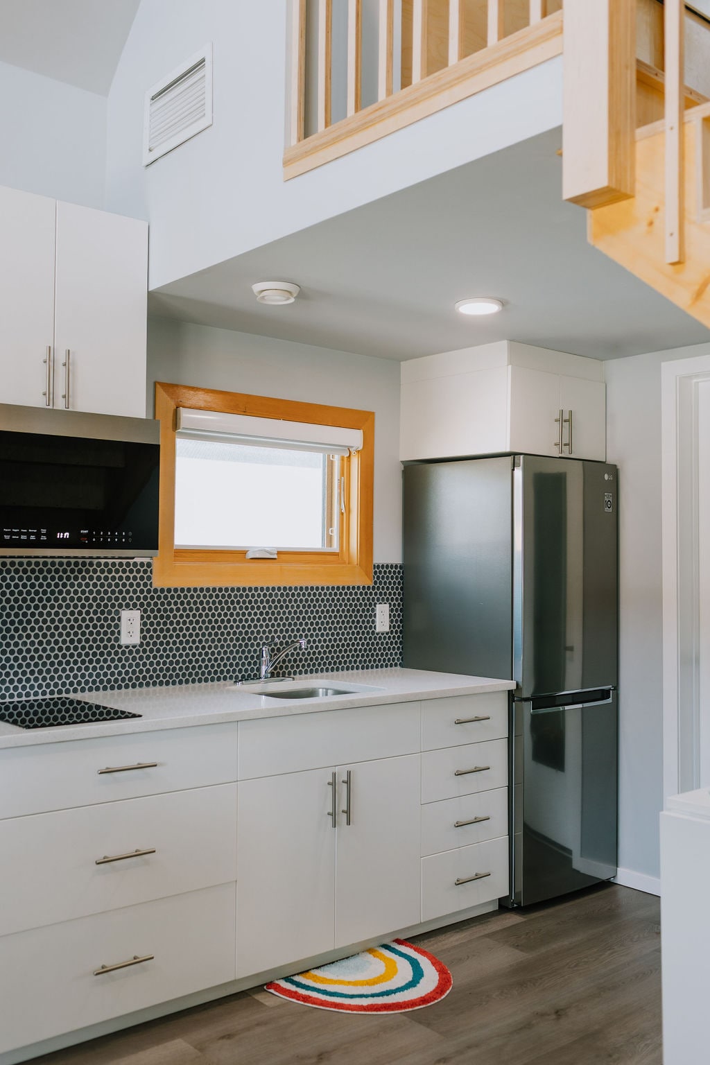Modern tiny home in the heart of Nordegg, AB—nestled in the Rockies on a golf course with mountain views. Sleeps 4 (1 bedroom + loft), full bath with heated floors, and a well-equipped kitchen (no oven). Enjoy the front porch for sunrises, sunsets, and stargazing. Includes Smart TV, games, books, Bluetooth speaker. Pet-friendly and walkable to town. Shared fire pit area with BBQ and roasting sticks—perfect for cozy mountain nights.