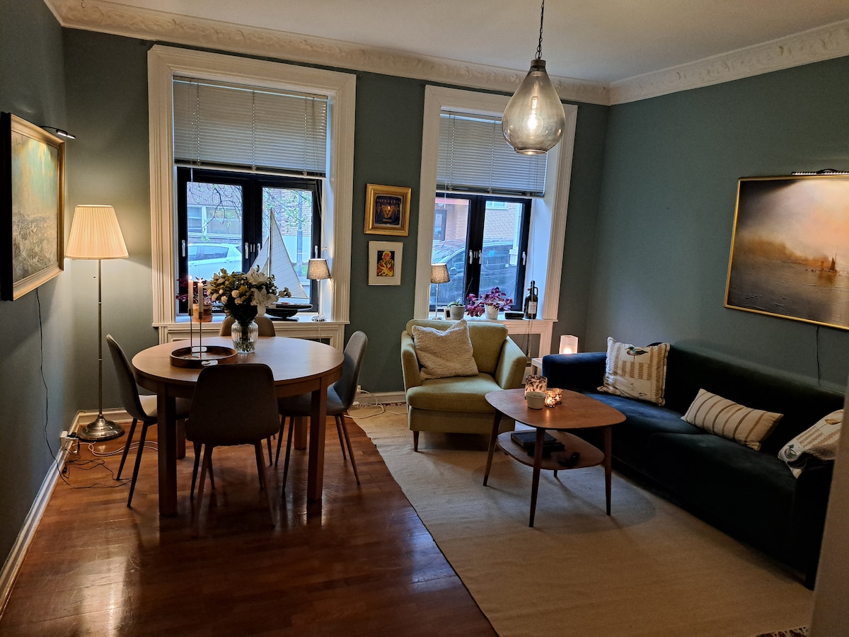 Discover an artsy gem in the historic Old Town, at the heart of Oslo! This stylish and fully equipped Nordic retreat boasts 3m-high ceilings, beautiful stucco details, and walls bursting with art. Bathed in natural light from large windows and fireplace, it offers a creative and inspiring sanctuary. Sip coffee with a view, unwind on the sunny rooftop terrace, and explore the best of Oslo's vibrant culture, parks, and city life —perfectly located to experience the true spirit of the city!