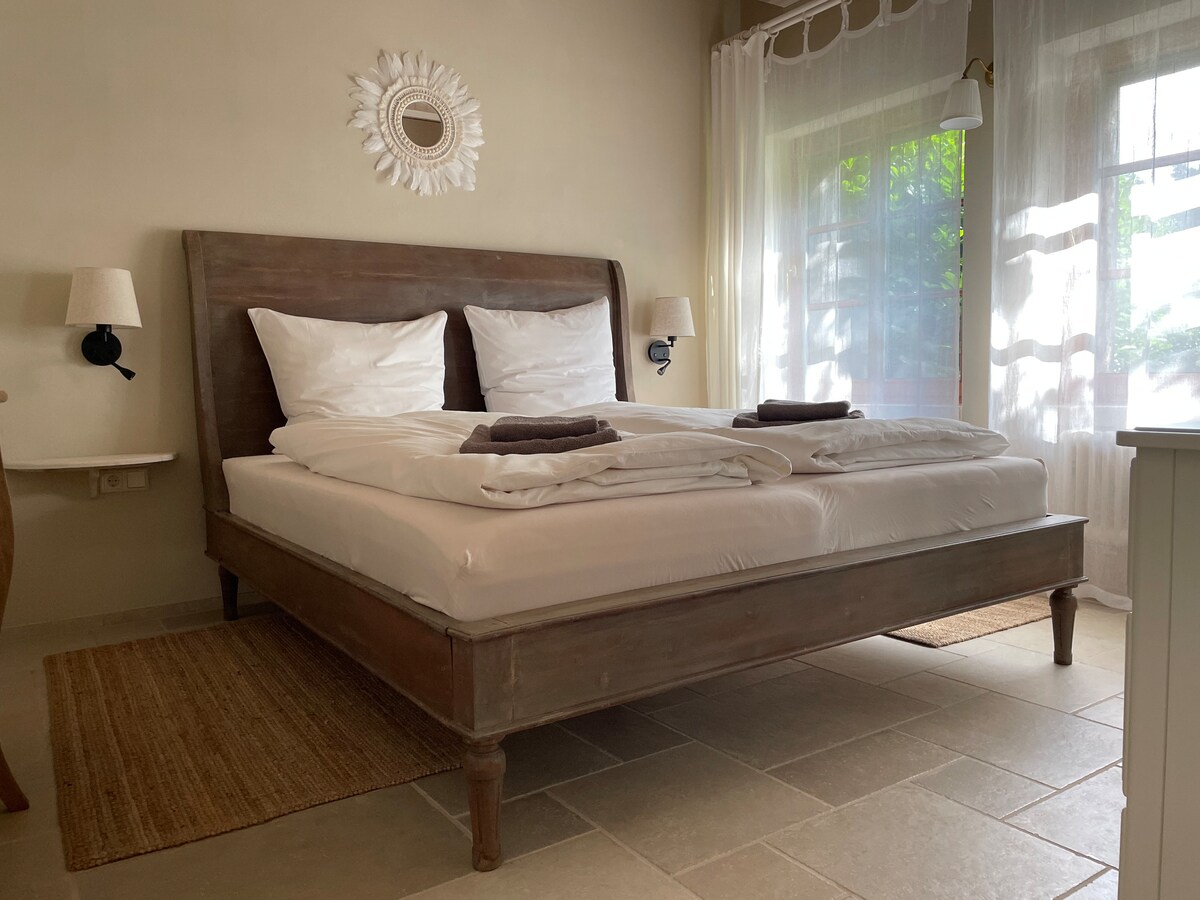 Detached vacation home in a small, quiet vacation village for up to 7 people with 3 bedrooms, 1 sofa bed, 2 bathrooms, whirlpool, sauna, fireplace, bright living area with open kitchen, stair gate, covered terrace with barbecue, garden, seating, hammock and your own rowing boat & SUP. The bathing lake with sandy beach and sunbathing lawn is approx. 50m away. A place to relax and unwind! Surrounded by beautiful nature with many excursion destinations in the area.