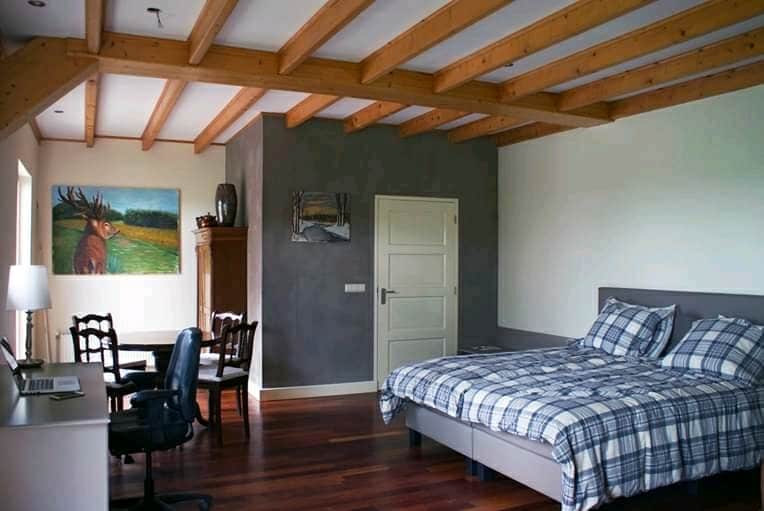 漂亮的房間,有獨立入口。 配有獨立的廁所和淋浴間、小廚房,您可以使用微波爐、水壺和dolce gusto咖啡機。 俯瞰美麗的花園,背後是通往Biesbosch的典型荷蘭風景。Gantelboerderij位於市中心,如Woudrichem、Heusden和Kinderdijk等歷史悠久的城鎮。 開車約20分鐘即可抵達Efteling。非常適合美麗的徒步和自行車路線。
