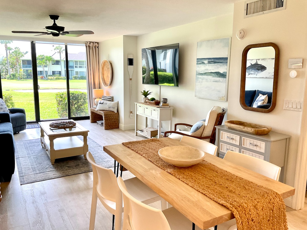 2022年精心翻新,準備為房客提供美妙的佛羅里達度假體驗。熱帶後院靠近風景優美的水道,可欣賞風景如畫的船和水景。 傍晚日落經常很壯觀。您一定會喜歡在私人碼頭上觀賞海牛和魚類玩耍和進食。步行即可抵達海灘。 帶有航海風格和交錯木板。開放式起居區和廚房。3張床、2間浴室( 2間廁所,無浴缸)充足的停車位。