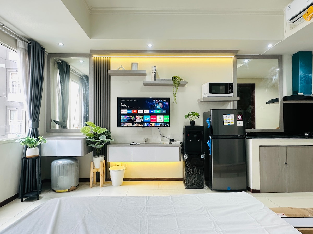 我們的公寓位於Maplepark公園)附近,靠近JIEXPO和JIS,提供現代舒適、高速網路和Netflix。開放式格局,配有時尚的家具、充足的自然光線、無縫的工作和睡眠區域。設備齊全的小廚房和豪華的睡眠區域,確保舒適性和實用性。這間單間公寓可輕鬆前往您的活動,並設有私人陽臺,可欣賞泳池景觀,結合都市精緻與舒適的魅力,是雅加達市中心的理想房源。