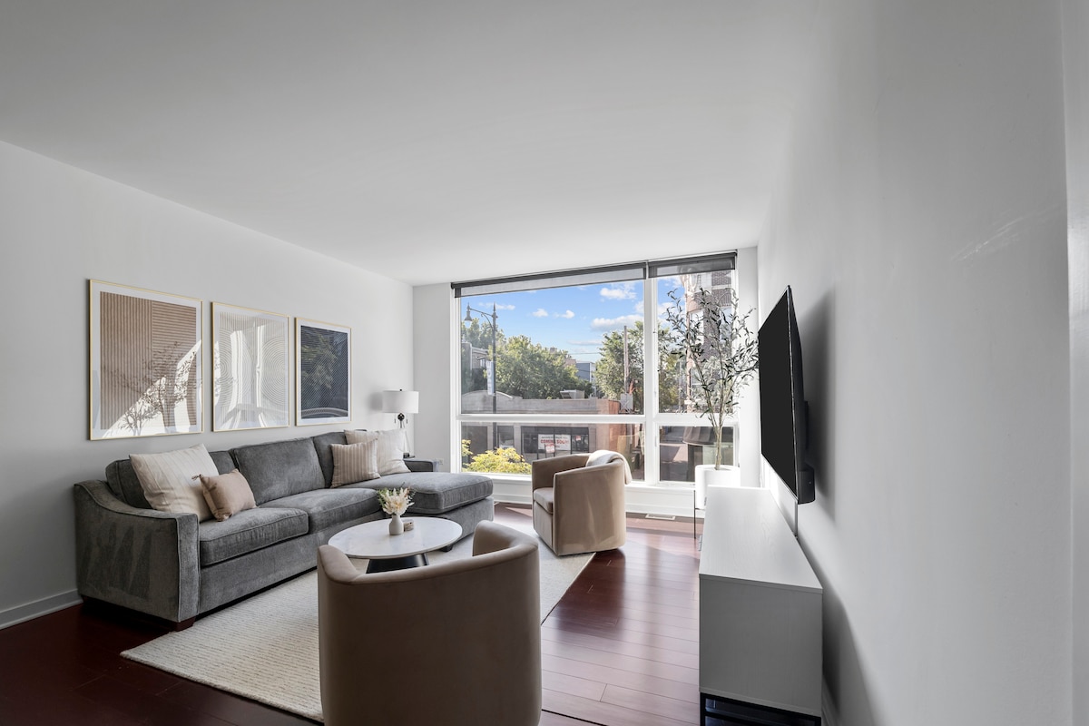 位於洛根廣場/艾雲谷的最佳位置! 全新時尚的頂樓2牀/2浴室,坐落在非常理想的Avondale街區的中心。 這個豪華的空間距離Wrigley Field有15分鐘車程,距離CTA Belmont Blue Line有7分鐘步行路程,距離O'Hare機場、芝加哥市中心和The Loop只有幾分鐘路程。 鄰近高速公路,交通便利。 距離屢獲殊榮的餐廳、熱門酒吧、很棒的咖啡店、俱樂部、畫廊和獨家商店僅幾步之遙。