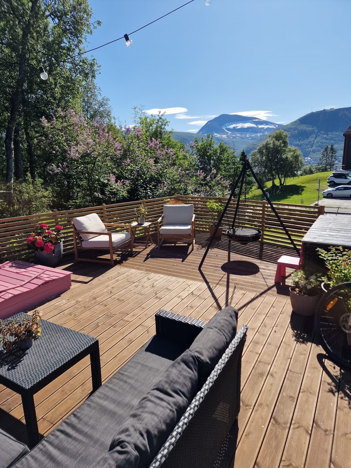 舒適明亮的露台公寓,非常適合體驗特羅姆瑟的城市生活和周圍的自然風光。 在這裡,您可以欣賞到峽灣和西南山脈的美景。 公寓標準良好,配備了您愉快入住所需的一切。 車棚內有免費停車位,距離巴士站很近,前往特羅姆瑟市中心和Fjellheisen的巴士交通非常便利。