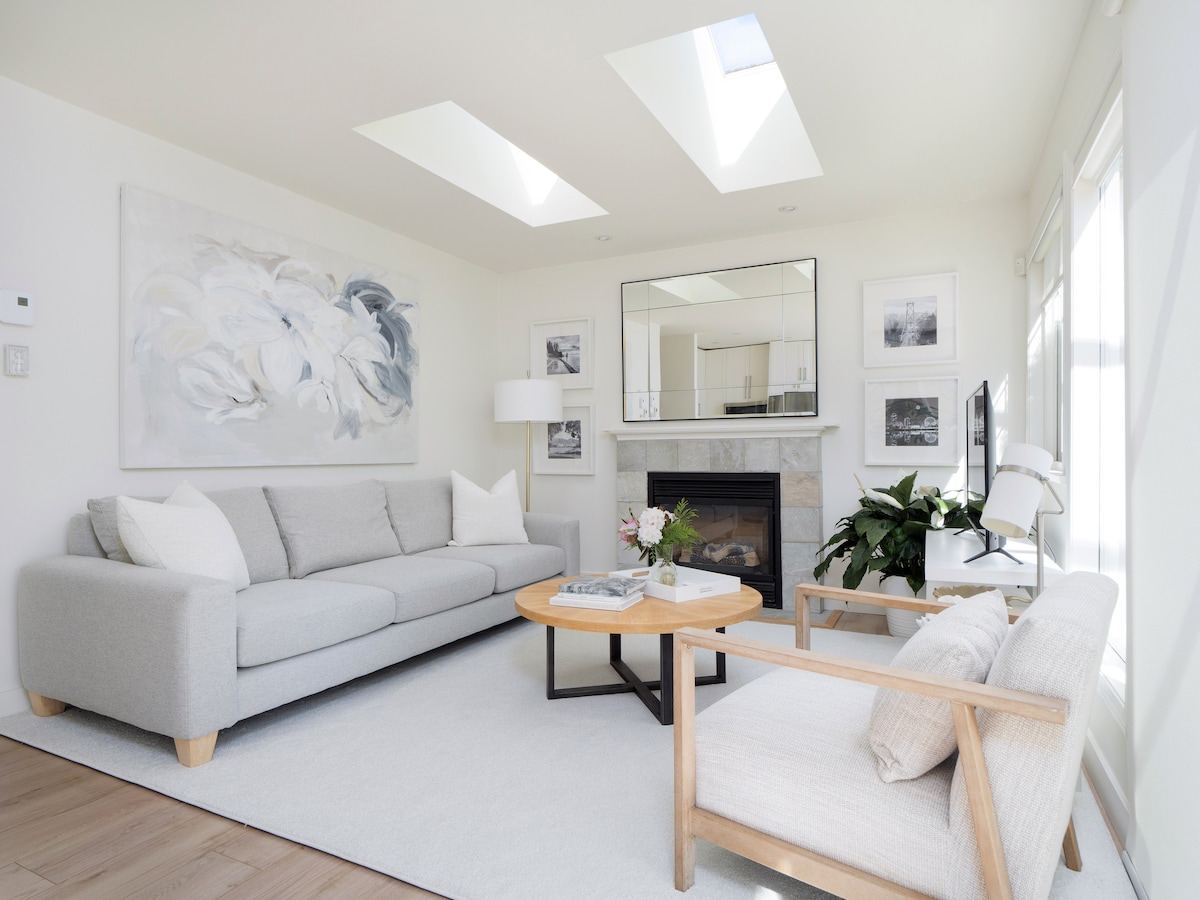 歡迎!在北溫哥華享受我們安靜、非常私密的花園套房。 您的上下沒有其他住客! 靠近山脈、公園、海灘、美妙的購物和餐廳-所有這些都在15分鐘或更短的時間內,距離市中心僅30分鐘! 享受以下主要功能: -大型私人日光浴甲板和躺椅 -天然氣壁爐 -天窗 -加大雙人床,配有優質床單 -空調 - LG洗衣機/乾衣機 -設備齊全的廚房 - Keurig -用餐區 - 42吋智慧電視,可收看Netflix -不限流量的WiFi