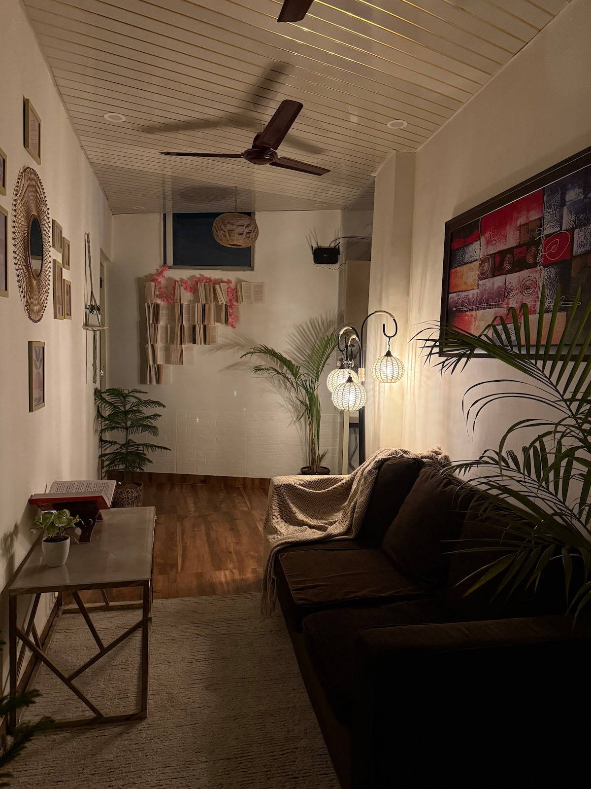 位於南德里@GK 1的中心,歡迎來到我們的簡陋家園。 這個小空間以單間公寓的形式設計,適合喜歡空間和隱私的人,配備短期和長期住宿所需的一切設備。它有一個小巧但設備齊全的廚房和浴室。配備全新的松下分體式空調,安裝於2025年 需要注意的一個關鍵元素是入口,它是通過我們房子後面的螺旋樓梯,位於非常中心的位置,附近有跑步公園和狗公園