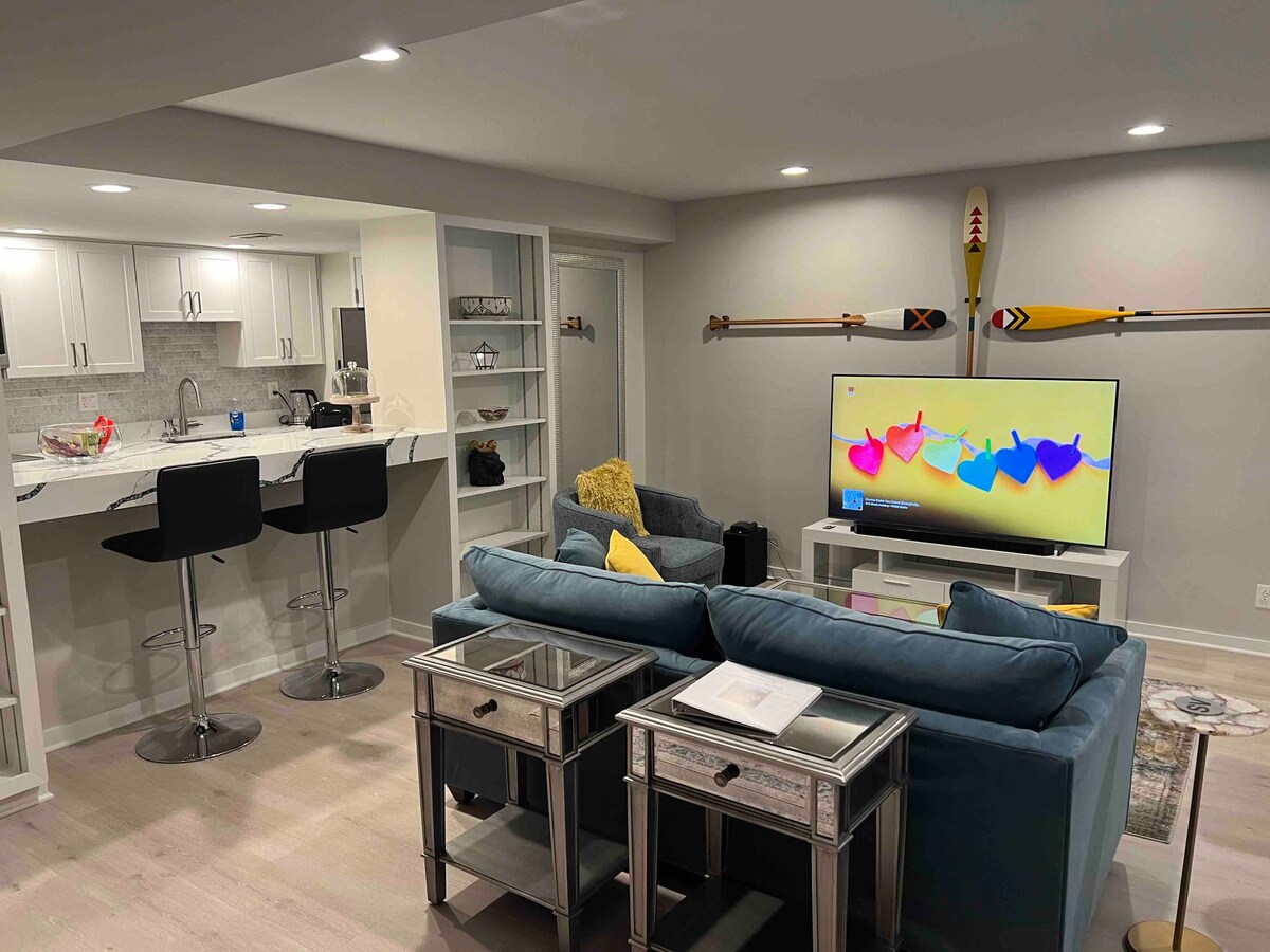 Enjoy a private, self-contained lower-level apartment in a quiet neighborhood of Silver Spring. With a separate entrance, this spacious home features two private suites, each with its own living area, workspace, and bathroom. The apartment includes a large kitchen, laundry access, high-speed Wi-Fi, and a backyard patio. Just a 5-minute walk to Fairland Recreational Park and minutes from transit for easy access to Washington, D.C.. Ideal for families, groups, business travelers.(whole basement )