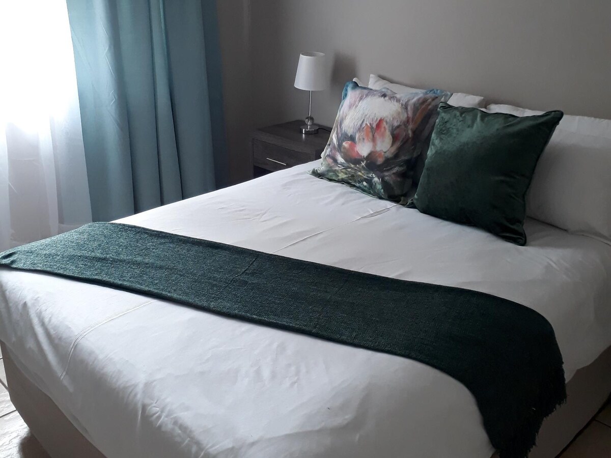 大型配有大牀、餐桌+椅子、帶淋浴間的浴室。 設備齊全的小廚房(冰箱、微波爐、2個爐頭、水壺、烤麵包機、洗手盆、鍋、煎鍋、餐具)、DSTV。 有冷氣。面向道路。公寓後面有停車位和燒烤設備,有WiFi