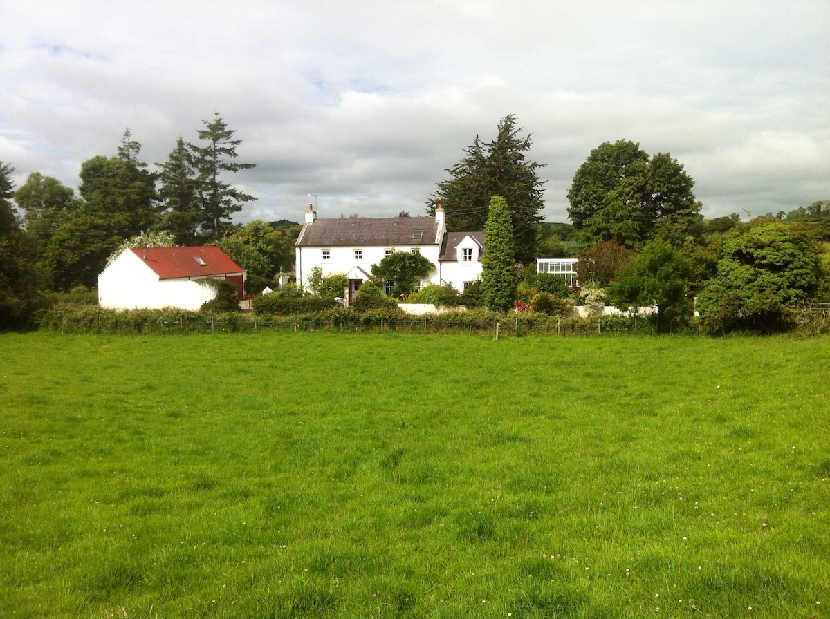 我們的房子有一個可愛、最近翻新的獨立附屬建築,坐落在風景如畫、非常寧靜的鄉村環境中。 南方的景觀非常壯麗。 有自己的入口、廚房和浴室(淋浴間,但沒有浴缸)。 地理位置優越,可欣賞北部的貝爾法斯特和北部。愛爾蘭,包括安特里姆峽谷和巨人岬。 《權力遊戲》的拍攝地點不遠(我們距離黑暗樹叢45分鐘車程)。 夏天,Richard 可能會飛他的熱氣球!