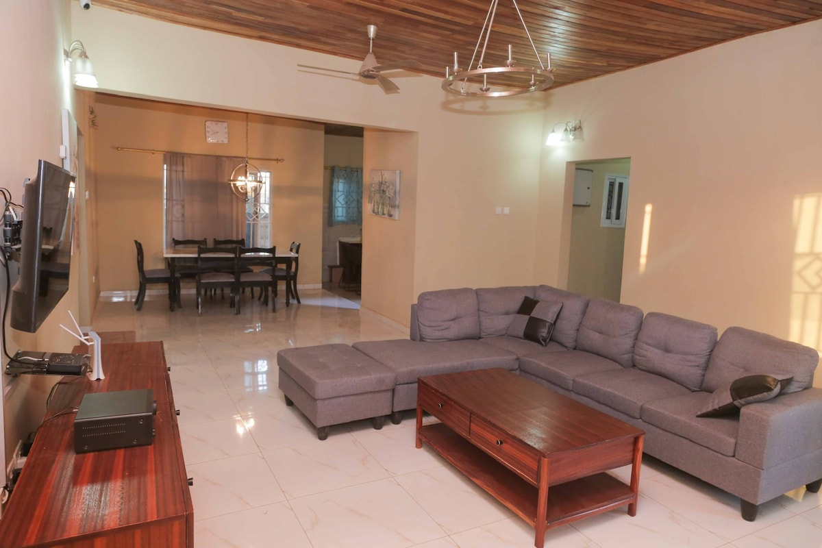 與家人、朋友或同事一起入住我們美妙的房源! 您可以獨自使用整個4間臥室的房子。 房子有空調,浴室有冷熱水、備用發電機、洗衣機和現代化廚房。 我們歡迎短期和長期住宿,適合商務差旅、探親、實習或檢查非政府組織項目。 我們最近安裝了星級連結,以提供更可靠的WiFi ,並有Roku連接到您的所有串流帳號。 我們非常期待您的到來!