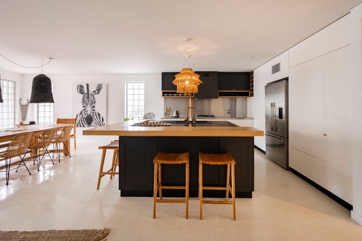 EV charger available at extra cost The Loft boast exceptionally high ceilings, exposed rafters and is uniquely architecturally designed. Two story floor to ceiling glass overlooking gardens All original Art works . A state of the art kitchen, an outdoor deck, with BBQ The space has a relaxing ambiance with balinese styling ,outdoor stone bath and day bed making sure you get to unwind. The General cafe at the end of street Property manager lives nearby
