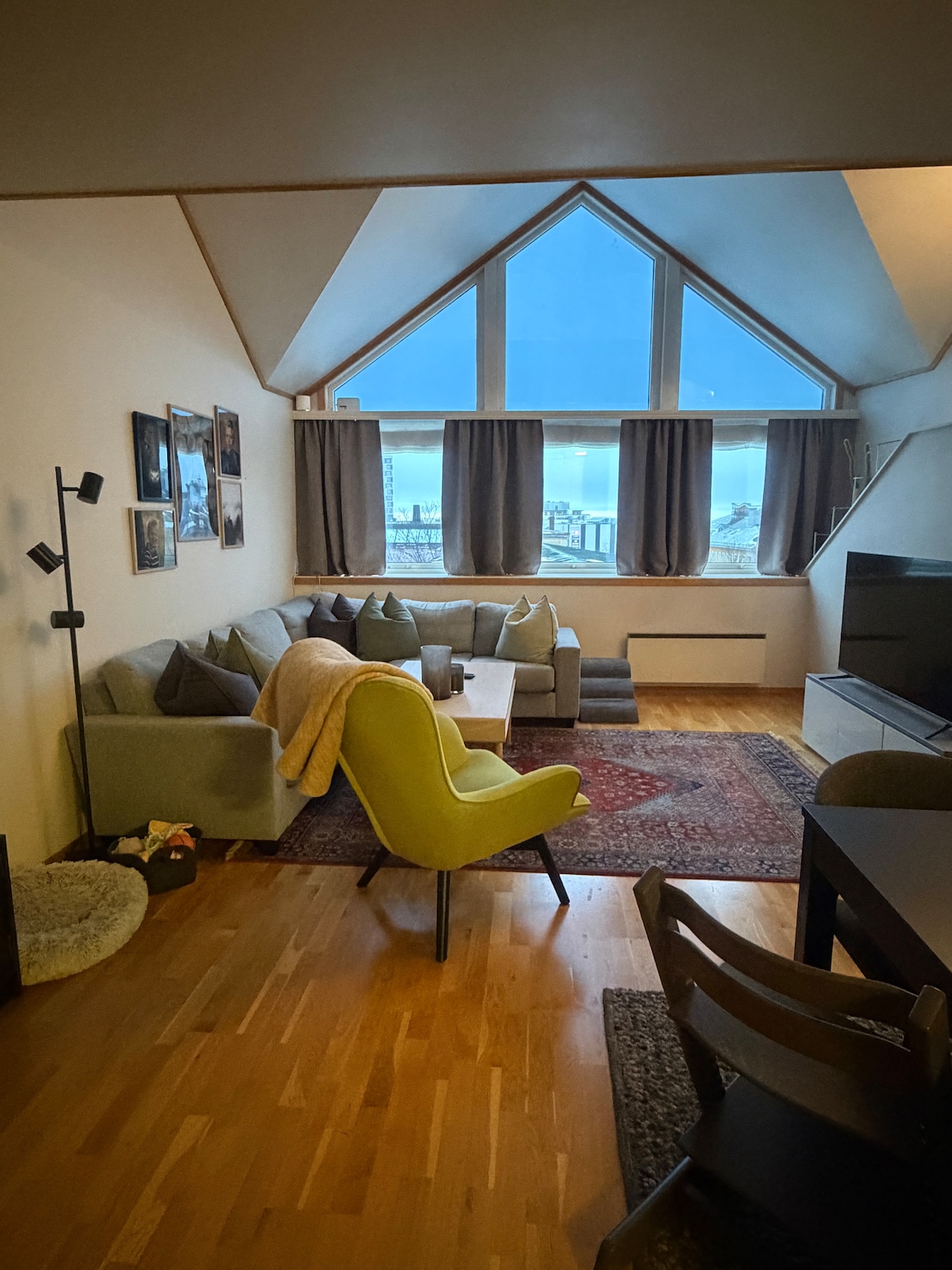 頂樓人士!在這間舒適而現代化的公寓中,您會發現自己在頂樓,距離考古博物館僅一步之遙。步行即可抵達斯塔萬格市中心的所有商店、餐廳和酒吧。 公寓適合商務人士和家庭入住,但不適合身高超過230公分且不喜歡爬樓梯的人。在這間公寓中,您將被寧靜的色彩包圍,從所有窗戶上都可以看到可愛的景觀