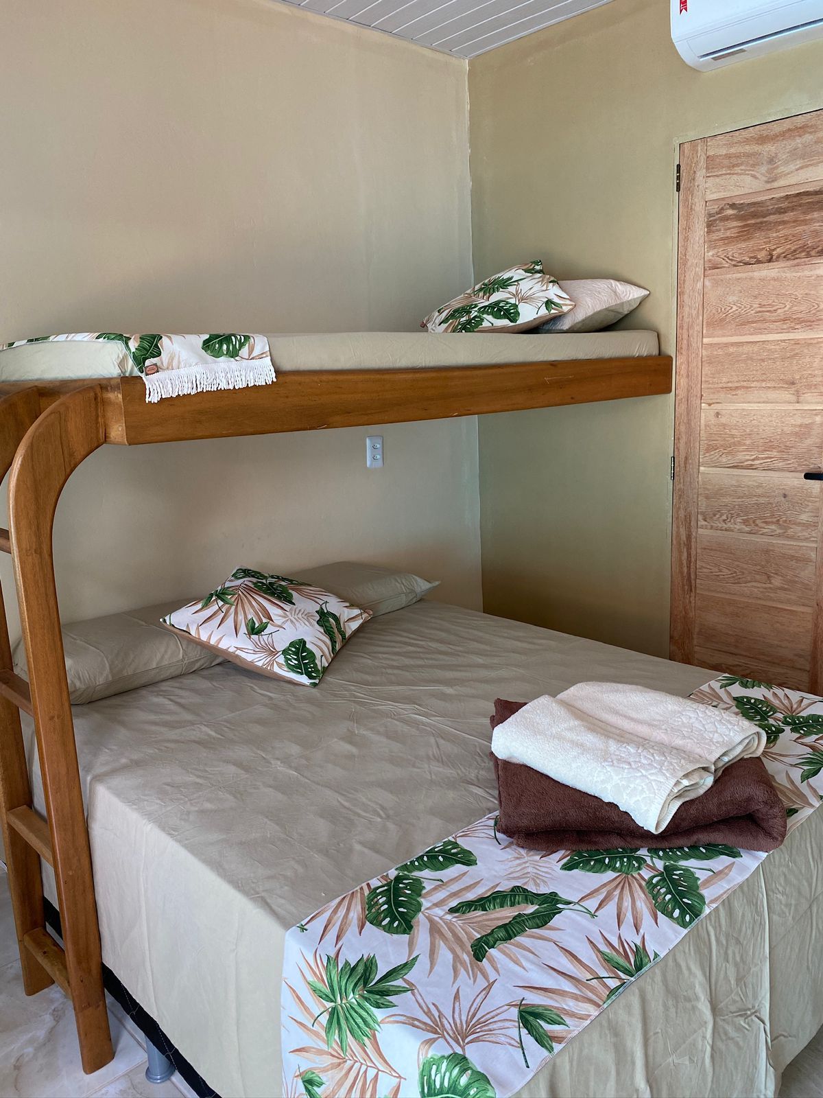 Quarto com capacidade para até 3 pessoas com banheiro particular. A área externa livre para crianças, leitura, churrasco, cozinha compartilhada a disposição, varanda para rede, um excelente lugar para relaxar. Espaço completo, ideal para família ou amigos que viajam em grupo. O aluguel é do apartamento mas os hóspedes tem acesso a todas as áreas. O anfitrião mora na residência. Estacionamento privativo para carros e motos, local limpo e higiênico. Disponível roupas de cama, toalhas e sabonetes.