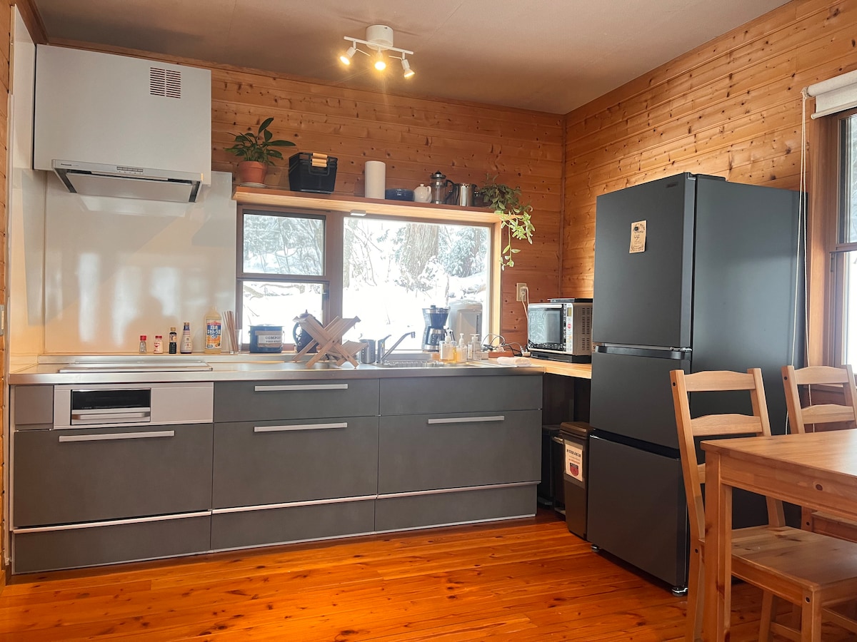 Kuri Chalet非常適合情侶或四口之家入住。位於Suginohara和Ikenotaira滑雪度假村之間。二樓的開放式區域可通往入口房間區域、廚房、用餐和起居區域和樓下的浴室。樓上則通往兩間獨立的傳統日式客房。開車前往當地4個滑雪勝地很方便。 建議您使用四輪傳動車,充分享受旅程,並提供停車位。